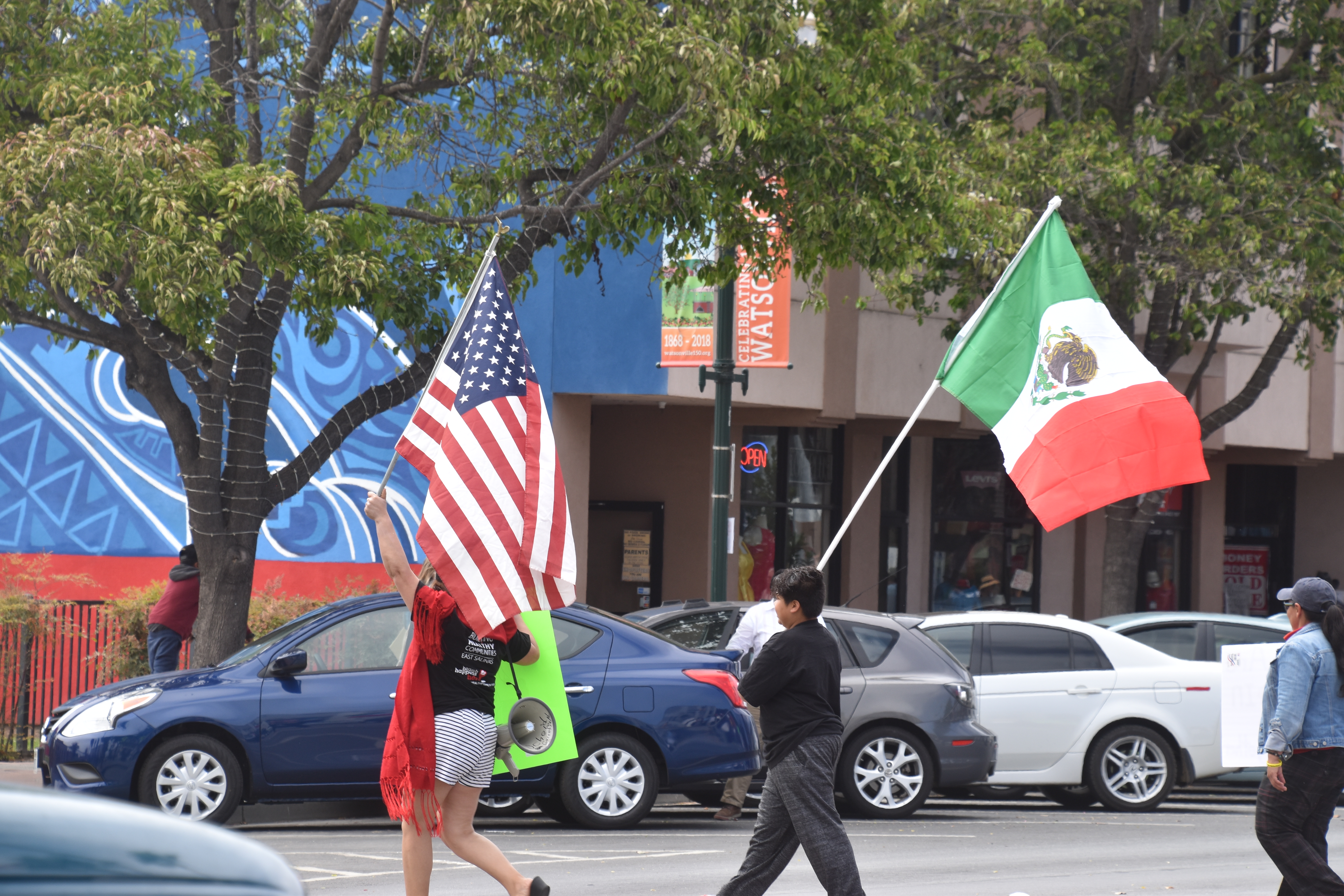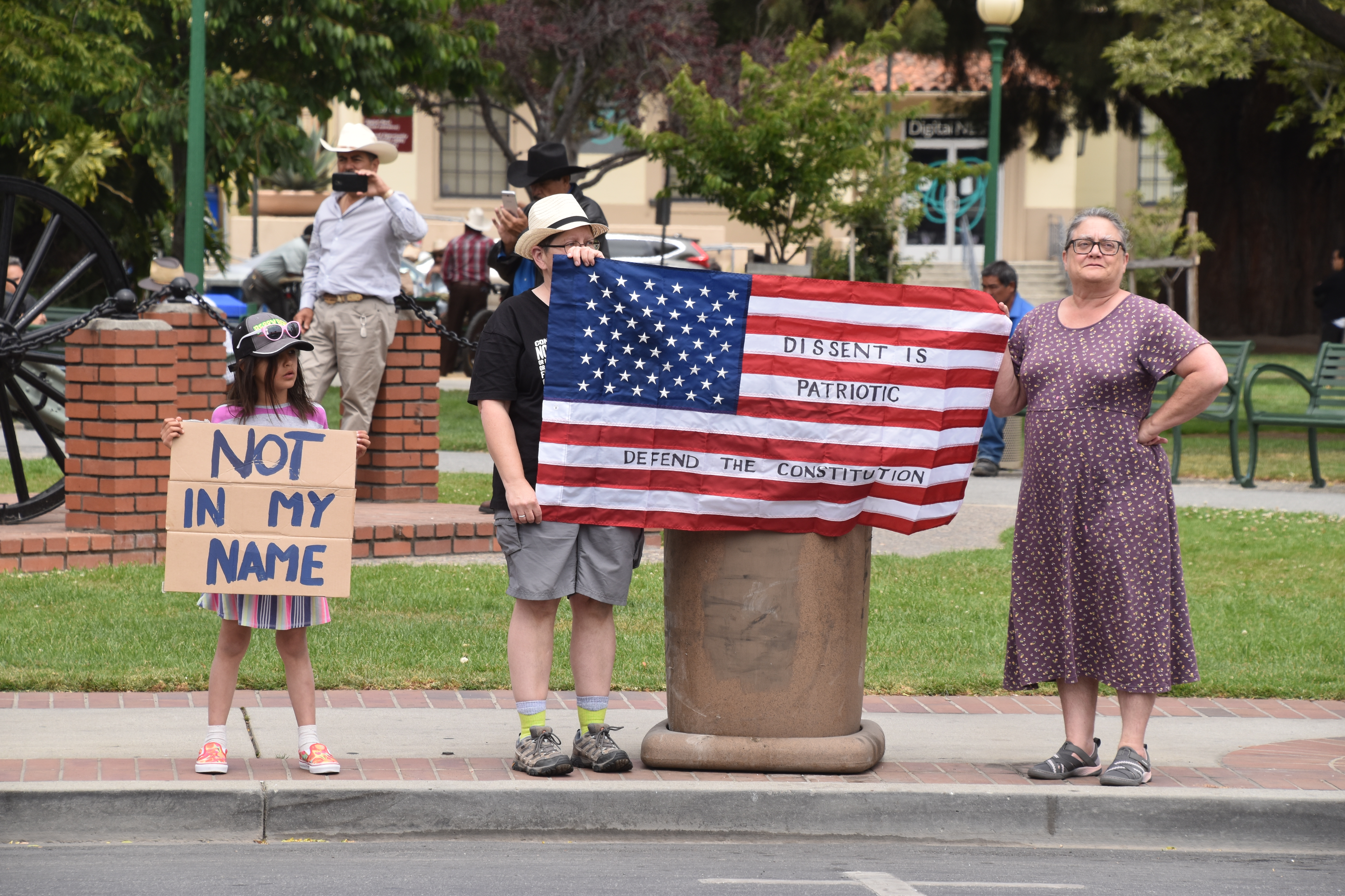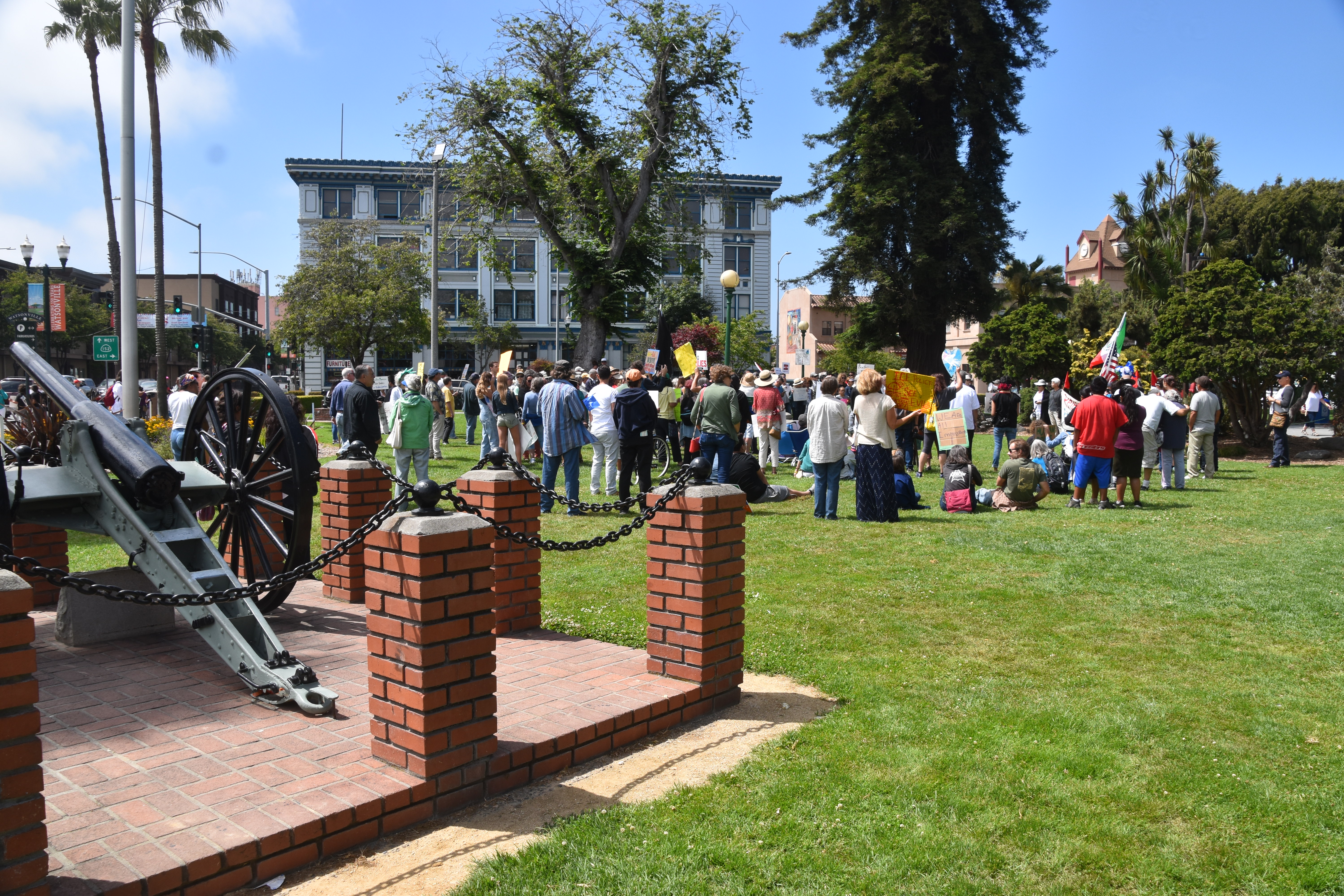'Families Belong Together' Now in Watsonville. After leaving Santa Cruz, also arriving early to the event, though the event did not start until 2 PM. Here is what is what it looked like when I arived at a bit before 1PM. Again many more people arrived by 2PM. There were not near as many people here in Watsonville, as there was in Santa Cruz! I believe that with events also in Santa Cruz and Monterey a lot of folks went to the others nearby towns! ( I must say, there were a lot of people that attended multiple events). The almost continious sound of the honking of horns, chanting, and yelling filled the air. I left at a little after 3PM. It's getting late, after a long day! I am so glad that so many concerned people, children, and some dogs! I hope you enjoy the pictures.