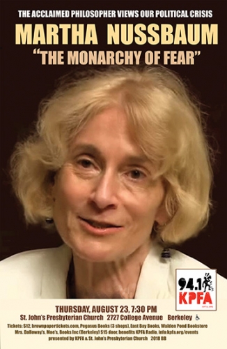 Acclaimed scholar and humanist Martha Nussbaum, Professor of Law and Ethics at the University of Chicago, author of many books, now presents "The Monarchy of Fear" - in which she turns her full attention to the dreadful crisis of American politics since Trump was elected. She articulates a clear politics of constructive work and hope.