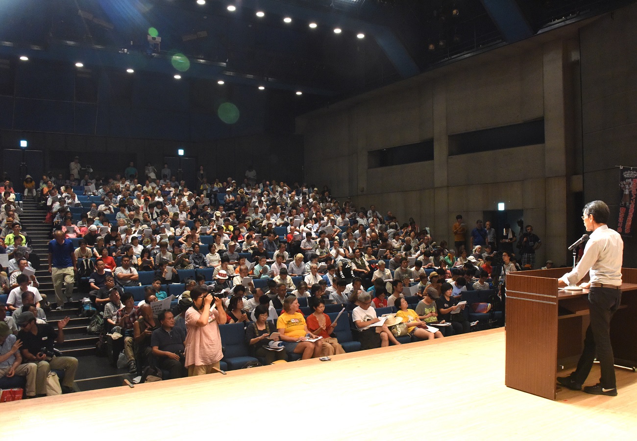 On the 73rd anniversary of the infamous U.S. dropping of the atomic bomb on Hiroshima, there are many memorials, rallies, and marches taking place in Hiroshima, both official and those organized by grassroots peace and justice activists. Sharat G. Lin, representing the San José Peace and Justice Center, addressed the International Anti-war Anti-nuke Rally at the East Ward Cultural Center in Hiroshima held on August 5, 2018.
