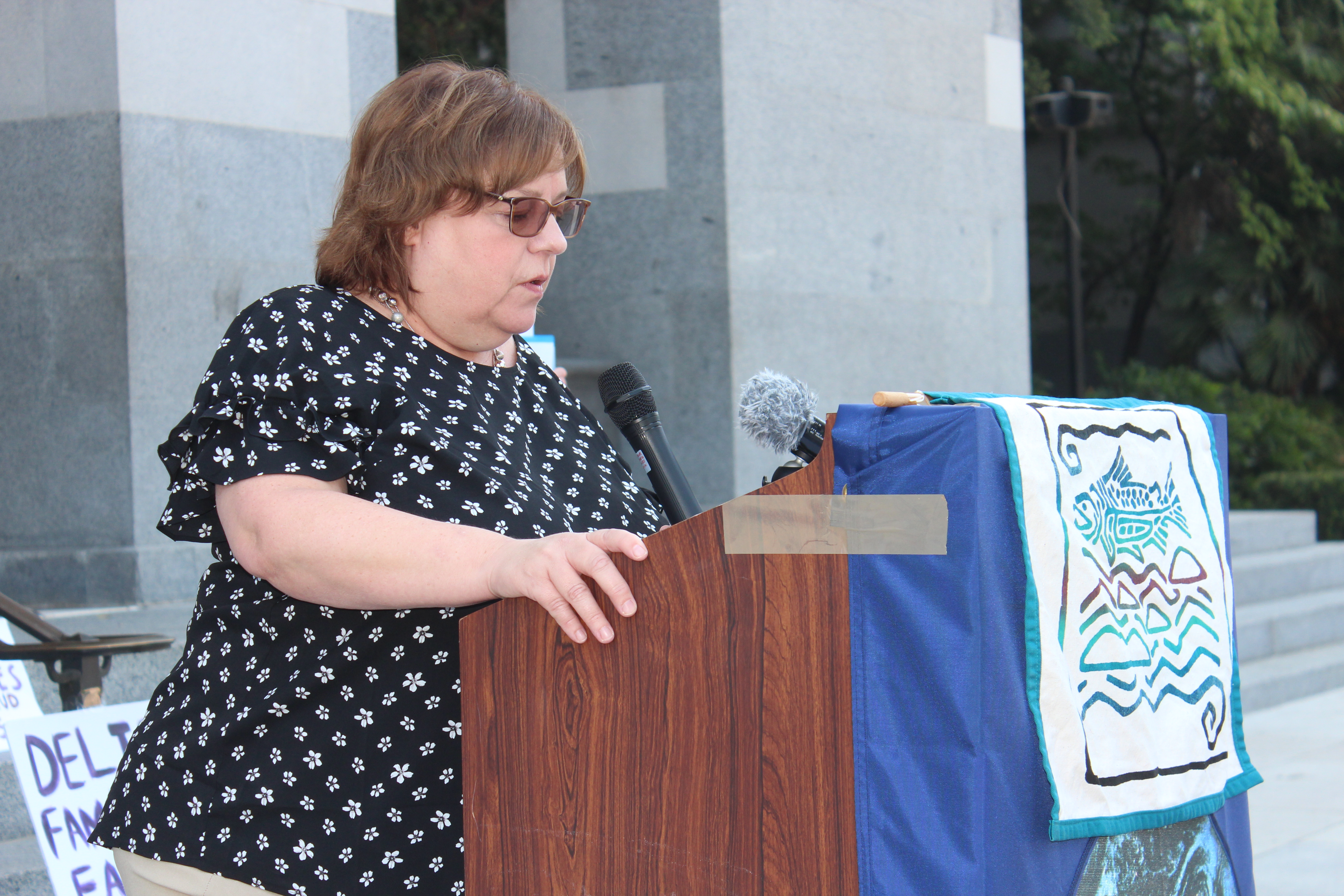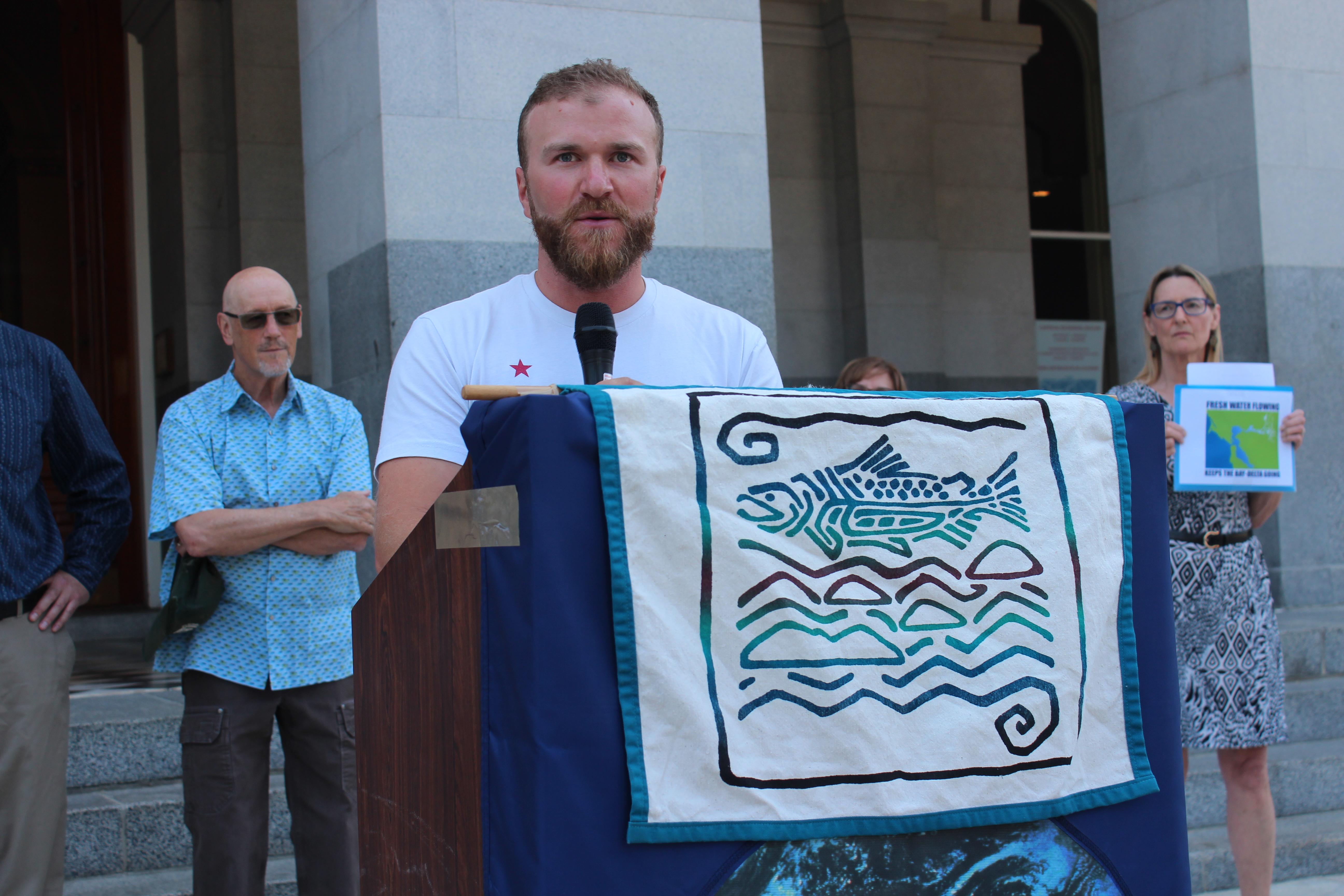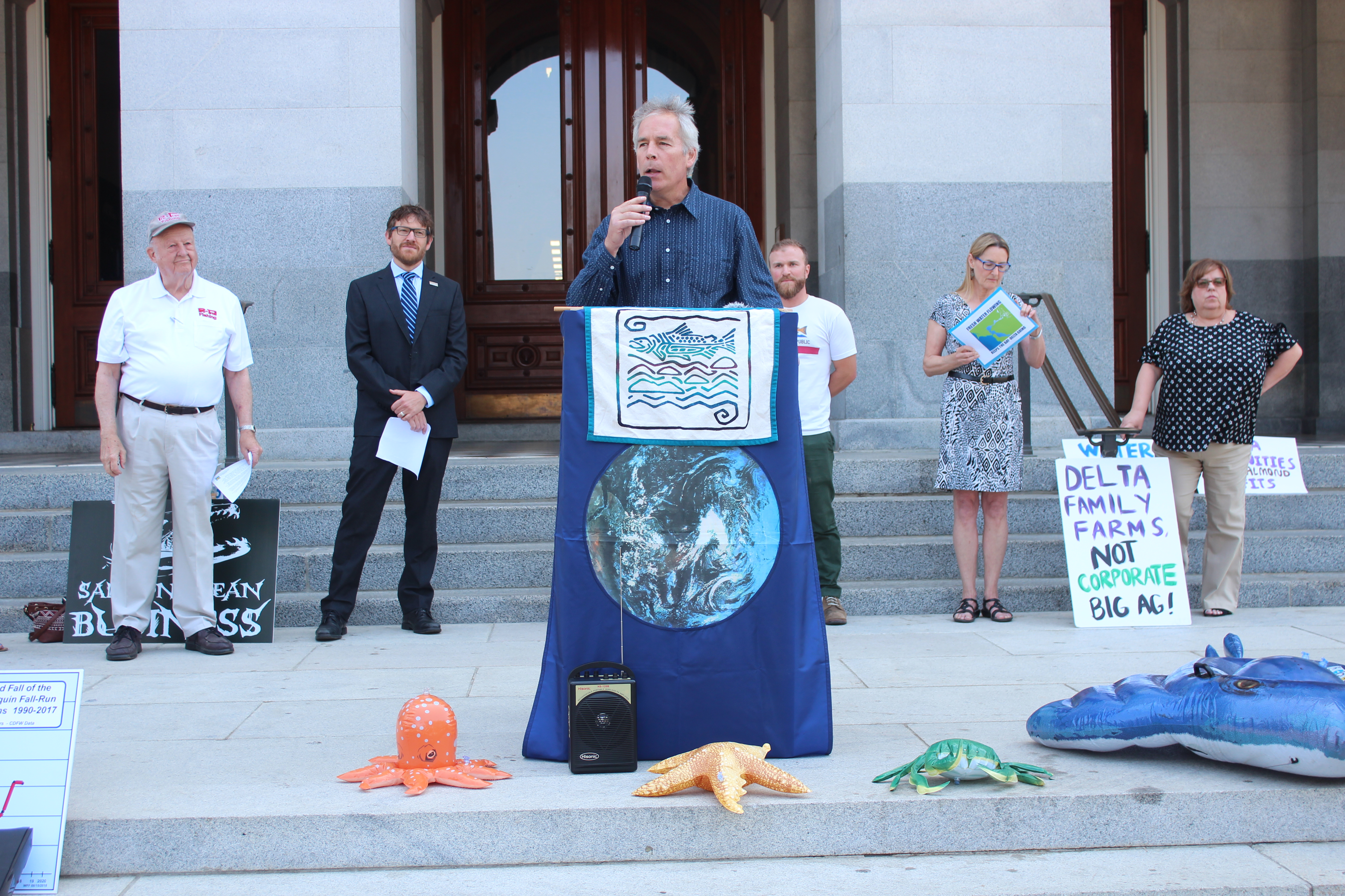 ”The truth is the truth. Fish need water,” said Minton at a press conference held by a coalition of environmental organizations, Northern California Indian tribal members, and commercial and recreational fishing organizations on the West Steps of the State Capitol.