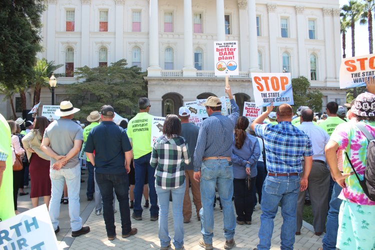 The event took place before agribusiness representatives and their allies held a noon rally opposing increased San Joaquin River flows for fish. In contrast with the growers, conservationists advocated for strong salinity standards and unimpaired San Joaquin River flows as part of the Water Board’s Water Quality Control Plan updates for the Bay-Delta (Phase 1).
