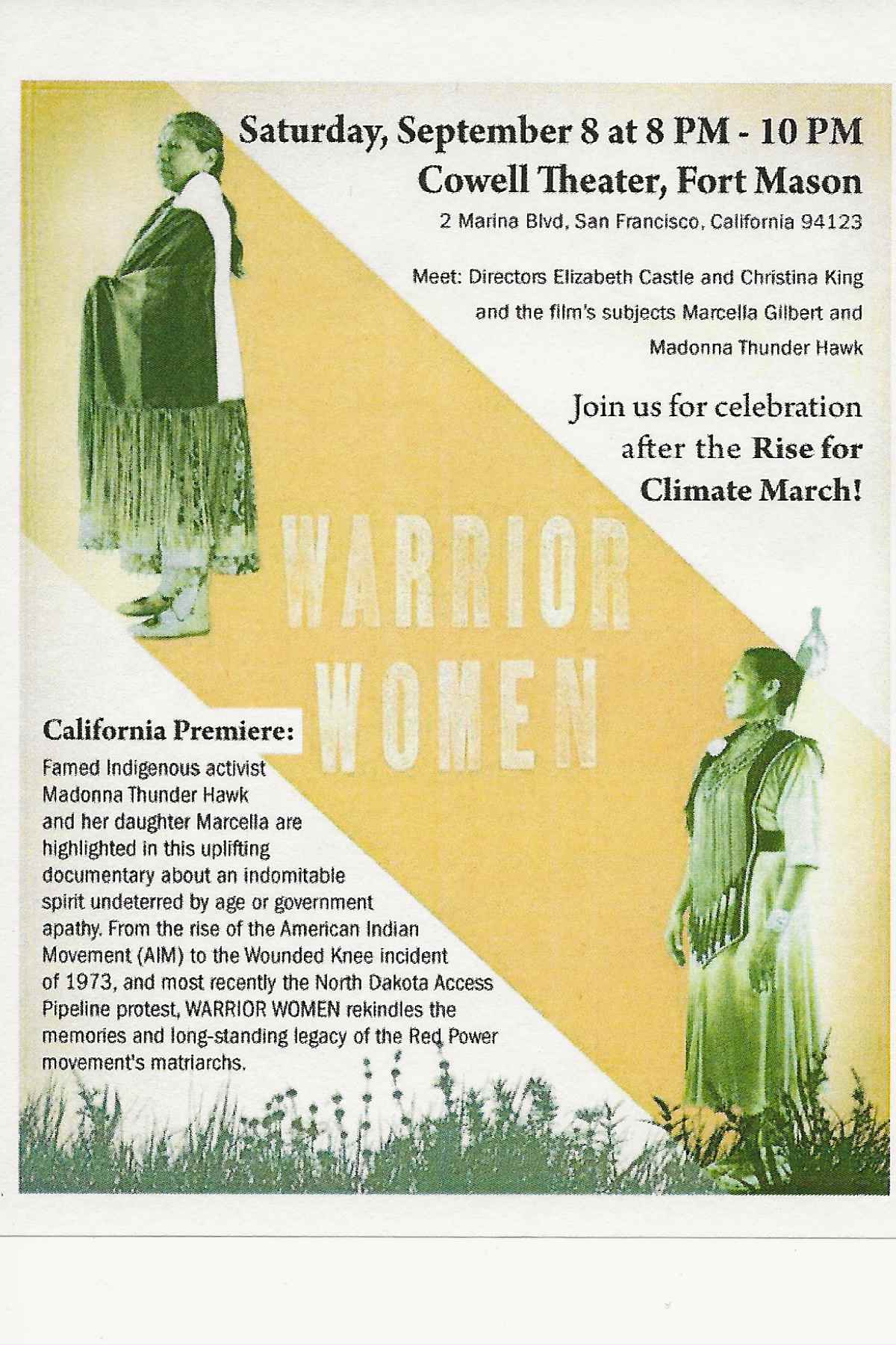 Please try to be in San Fransisco on September 8th. 2018 (10 am. to 2pm.) for the march "Rise for Climate, Jobs & Justice!" After the march, please don't forget the San Francisco Green Film Festival that will feature Madonna "Warrior Women"