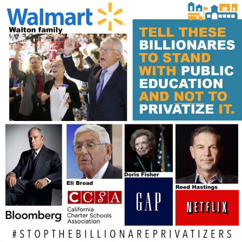 They even tried to privatize the Laney Community College by taking over the college land using their control of The A’s. The A’s manager John Kaval is also on the board of Rocketship and the team is owned by billionaire GAP family member John Fisher who also supports charters and privatization and helps fund the California Charter School Association and union busting candidates throughout the state and nationally.