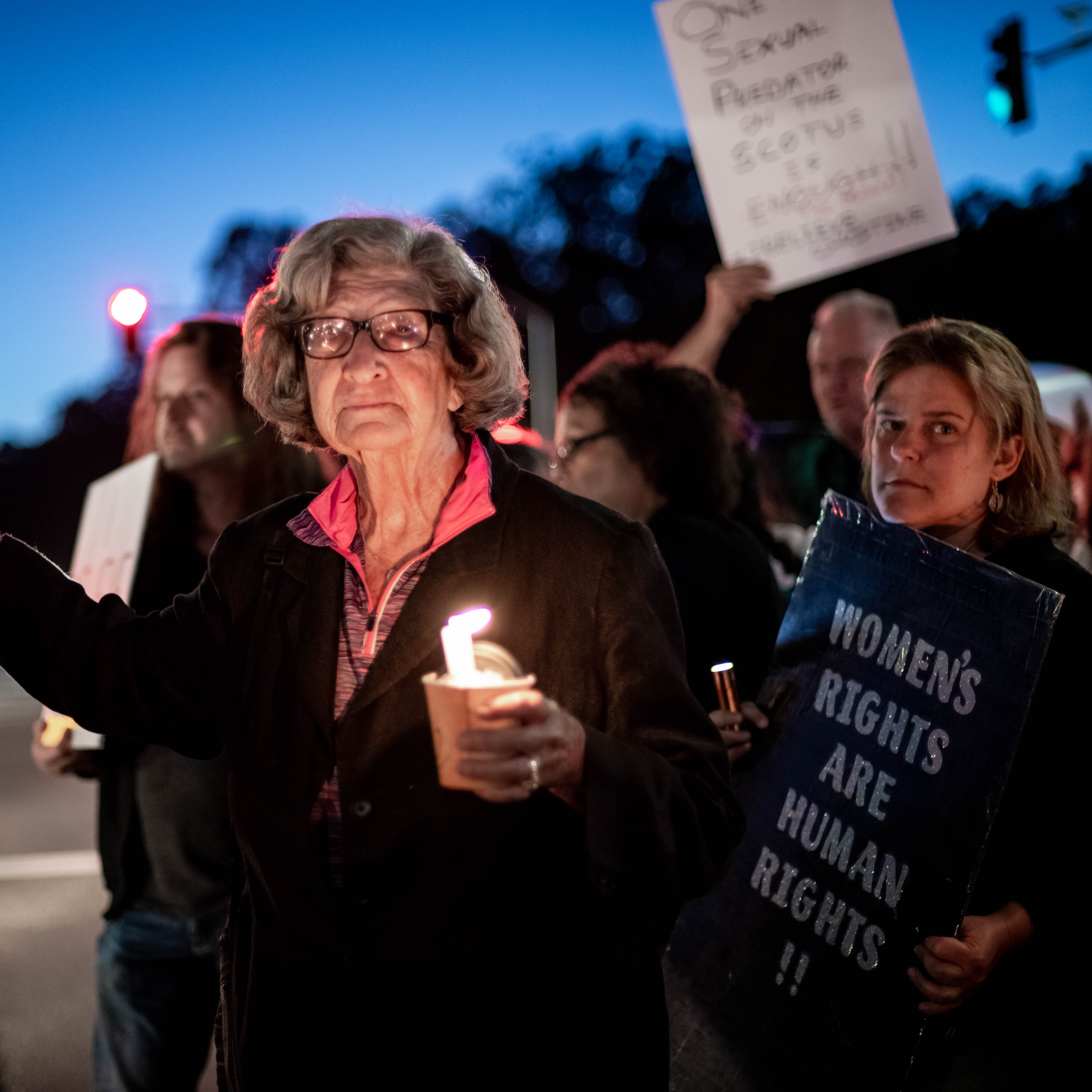 Since Ford came forward with her accusation, Republican leaders are questioning why she didn't report the attack at the time it happened. In response, survivors of abuse are rallying around a new hashtag, #WhyIDidntReport, to highlight the fear, shame, and misplaced feelings that surround sexual assault. One woman, pictured here, held her Why I Didn't Report sign with this explanation: "Because he was a friend and I didn't want him to get in trouble." Women surrounding her at the rally said, "we understand".