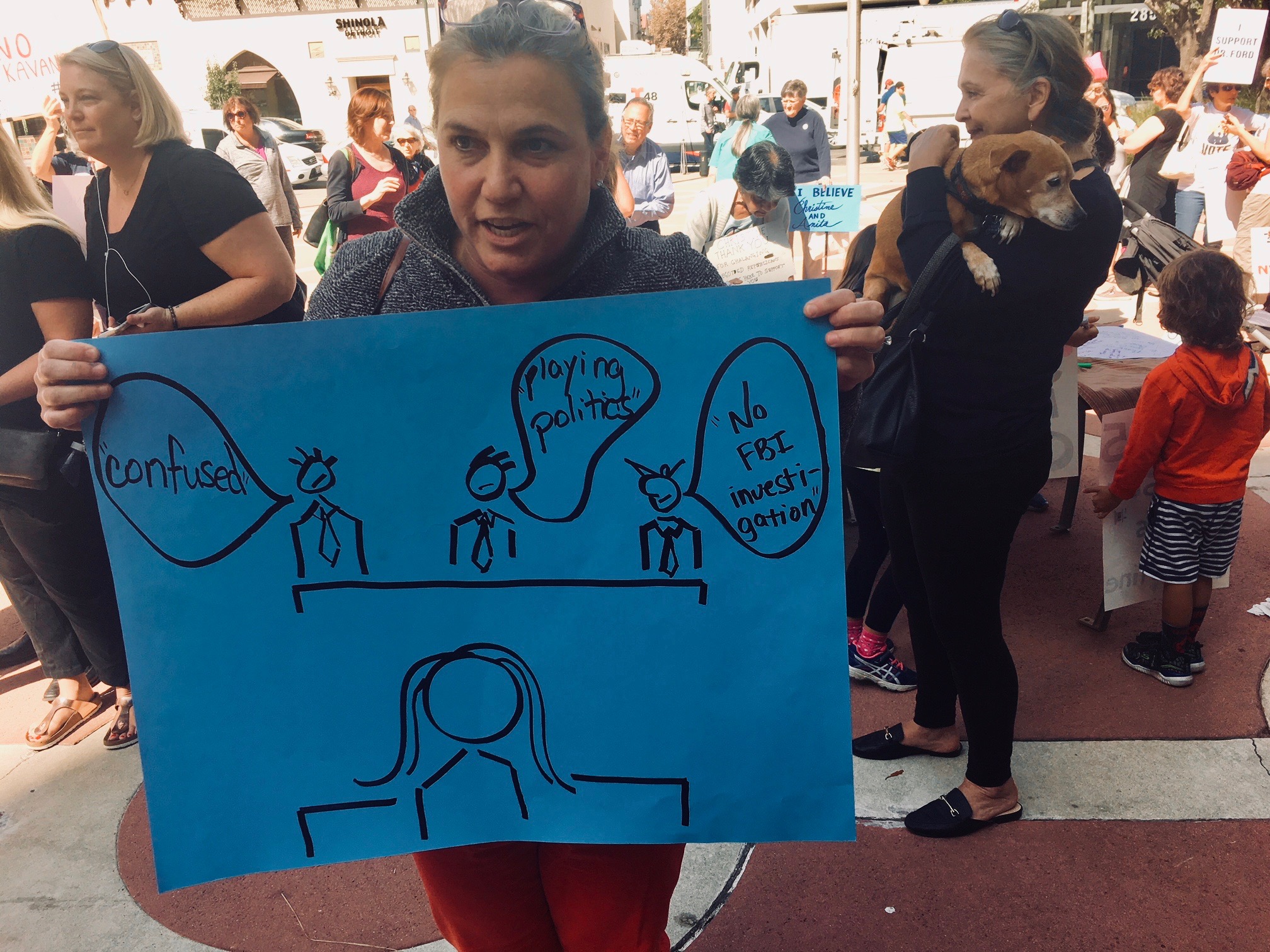 The eyes and ears of the country were on Capitol Hill September 27 when Christine Blasey Ford testified in front of the Senate Judiciary Committee against Supreme Court Nominee Brett Kavanaugh. At the same time as the testimony was being broadcast, on the other side of country many of Dr. Ford's friends and neighbors in Palo Alto, California were demonstrating in front of City Hall.