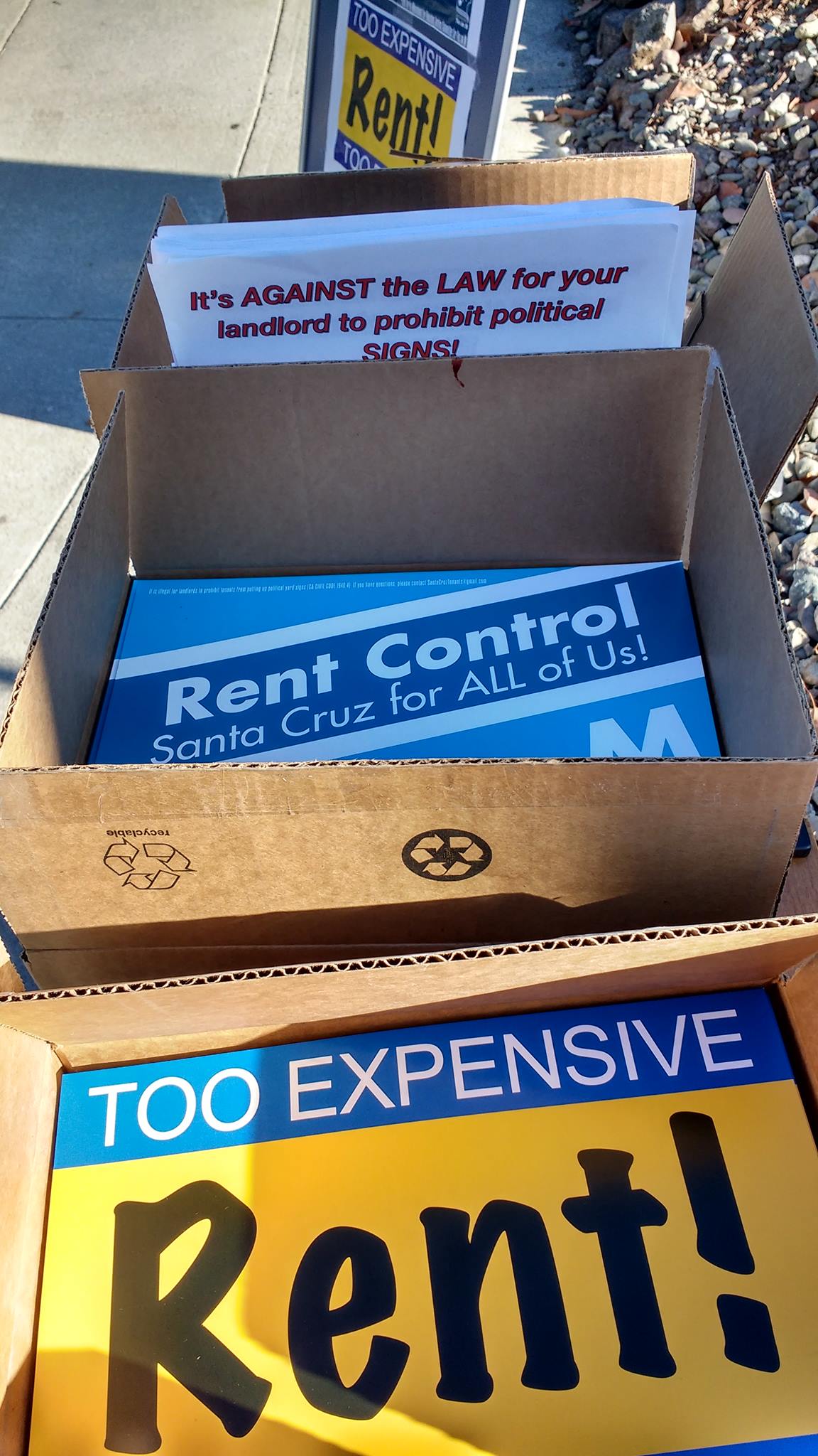 Our opposition has now raised over three quarters of a million dollars, which they are using to spread fear and misinformation about rent control. While most of this money comes from out of the area real estate interests like the National Association of Realtors and the California Apartment Association, local landlords in Santa Cruz are also part of the problem. Over the last week, a number of banners have appeared on buildings owned by Darius Mohsenin, a landlord with dozens of properties from Santa Cruz to Salinas, San Leandro, and Vacaville. One banner on a small apartment building on lower Pacific claims that under Measure M, 146 people would be allowed to live there. This is a wild exaggeration; there are federal and state guidelines to protect against overcrowding, which would not be changed by Measure M.