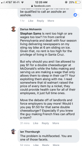 Local slumlord Darius Mohsenin and vocal supporter of the No on M Campaign distributed these flyers at the No Place Like Home event in Santa Cruz yesterday. This is an outrageous display of racism. These flyers look like something found at a KKK rally or a Proud Boys meetup. Darius is a large donor to the No on M campaign, and his banners with similar racist and classist undertones can be seen flying prominently around the city.
