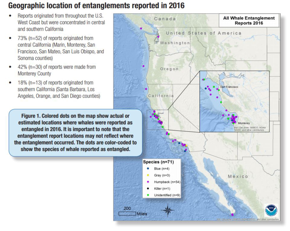 The California Legislature this year passed Senate Bill 1309, the Fisheries Omnibus Bill, which recognizes the entanglement crisis. The bill calls for the Department of Fish and Wildlife to do more to address whale and sea turtle entanglements in commercial Dungeness crab gear.