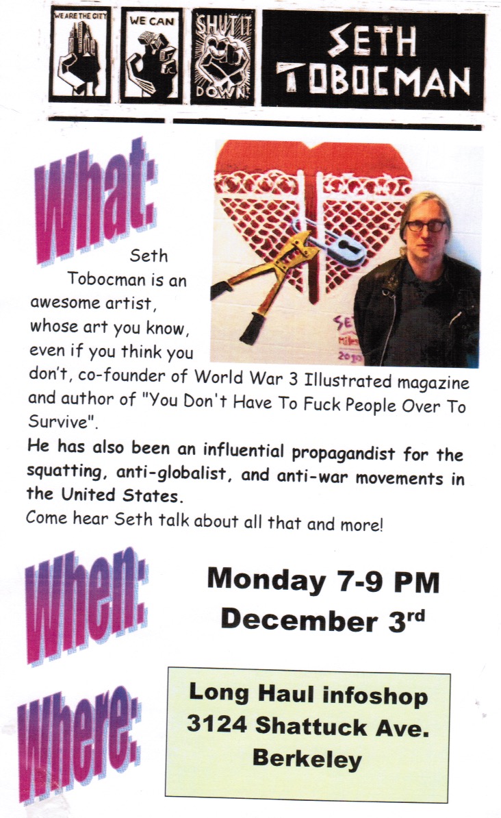 Seth Tobocman - co-founder of World War 3 Illustrated magazine and author of "You Don't have to fuck people over to survive" - an influential propagandist for squatting, anti-capitalism and anti- war movements.