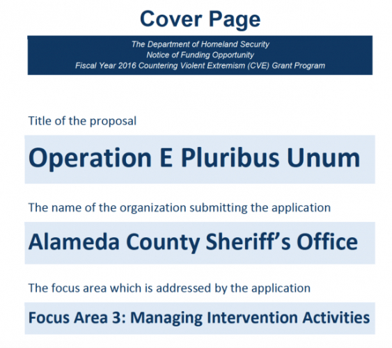 In June 2018, Alameda County’s Board of Supervisors approved contracts for a new project to “create a culturally competent and informed network of support … for incarcerated adults in the criminal justice system within Alameda County.” The project, Operation E Pluribus Unum, received $499,125 from the federal Countering Violent Extremism (CVE) program. The $10 million grant program is administered by the Department of Homeland Security (DHS). The CVE grant program seeks to prevent terrorism by “building and fostering community resilience to violent extremism recruitment and radicalization,” according to the DHS.