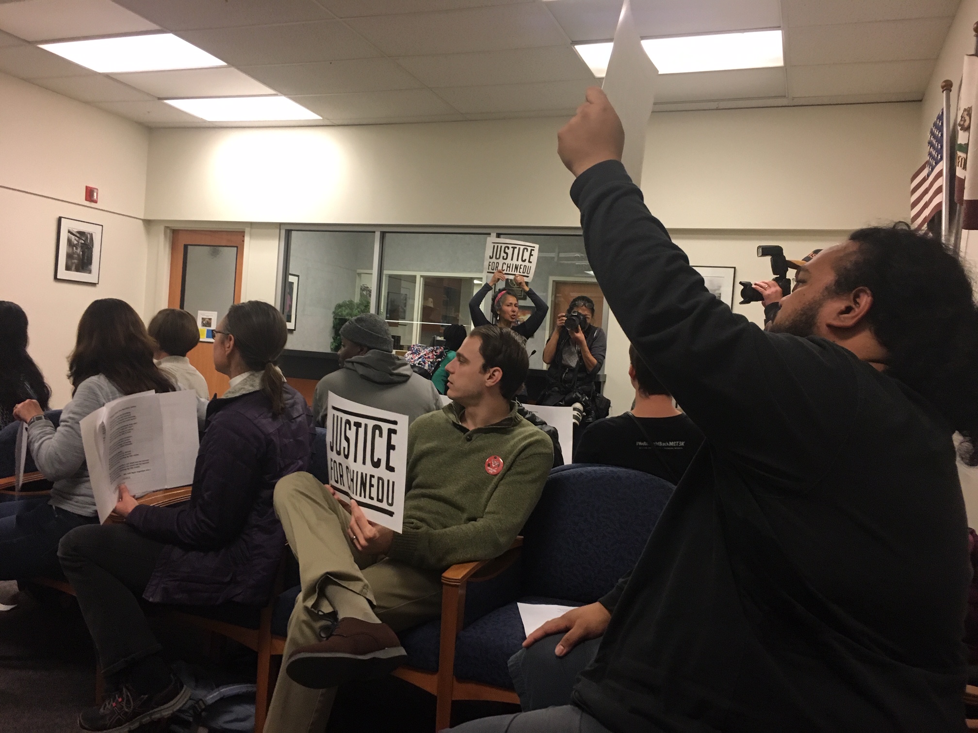 Hundreds of people called and emailed the Board of Supervisors, San Mateo County, after Chinedu Okobi was killed by sheriff's deputies with tasers last October. He had been walking, unarmed, with shopping bags along the El Camino Real in the city of Millbrae when he was tackled by 5 law enforcement officers.