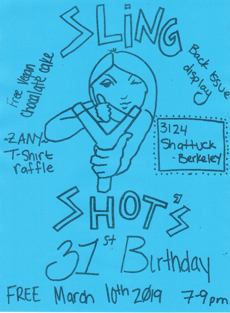 Meet authors from the last 31 years, learn how you can get involved in Slingshot for the next 31 years, look at a display of back issues.