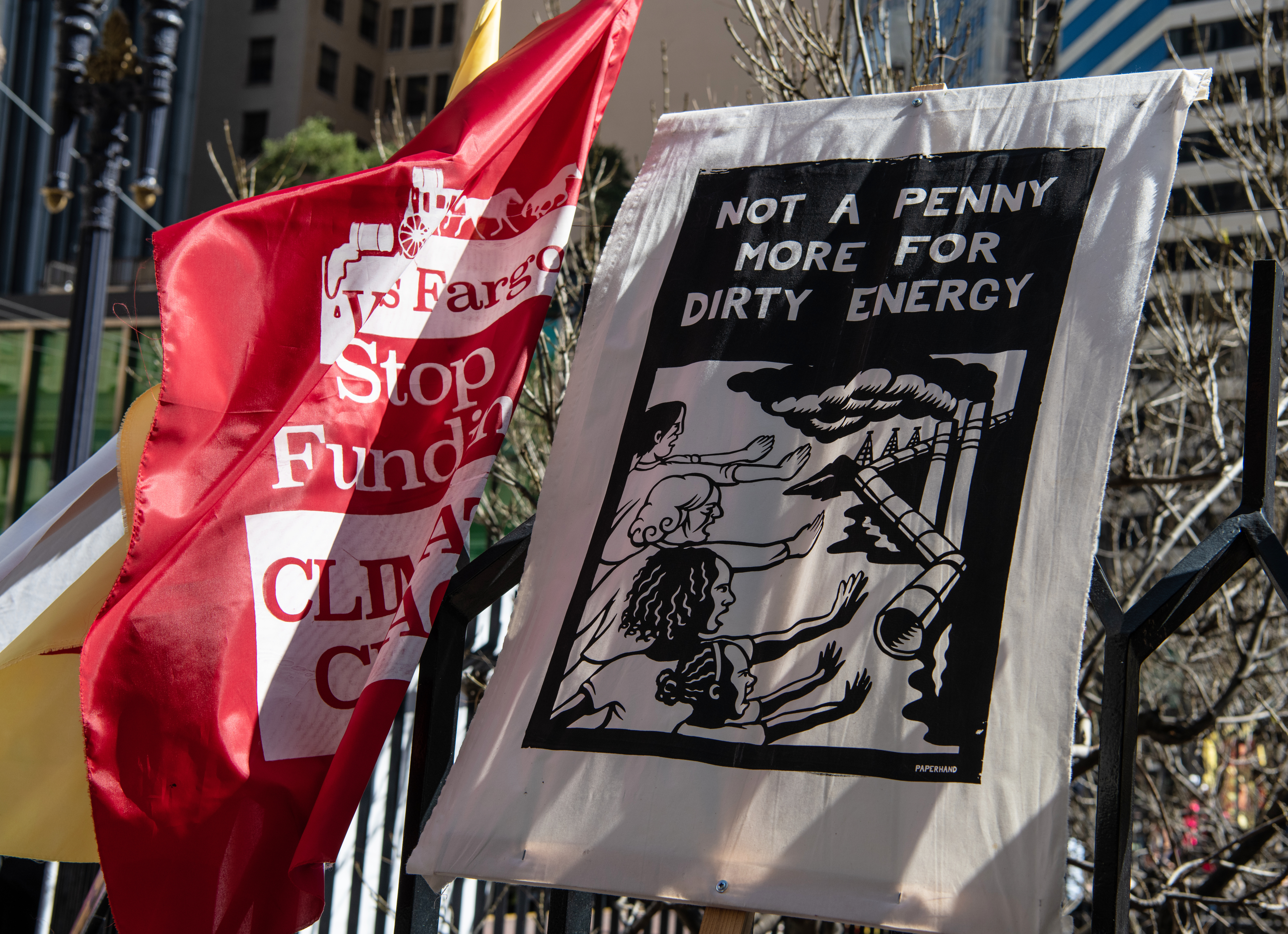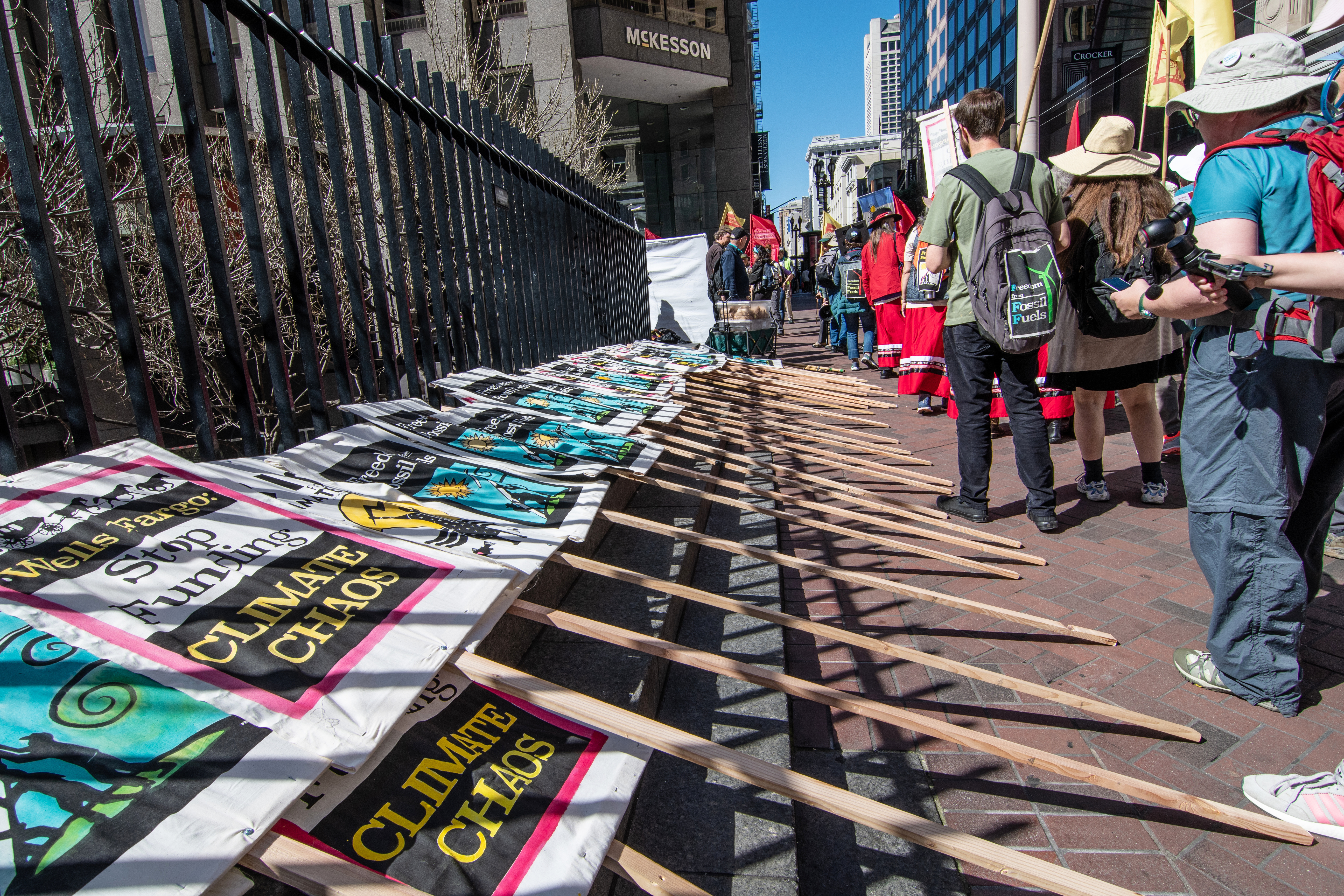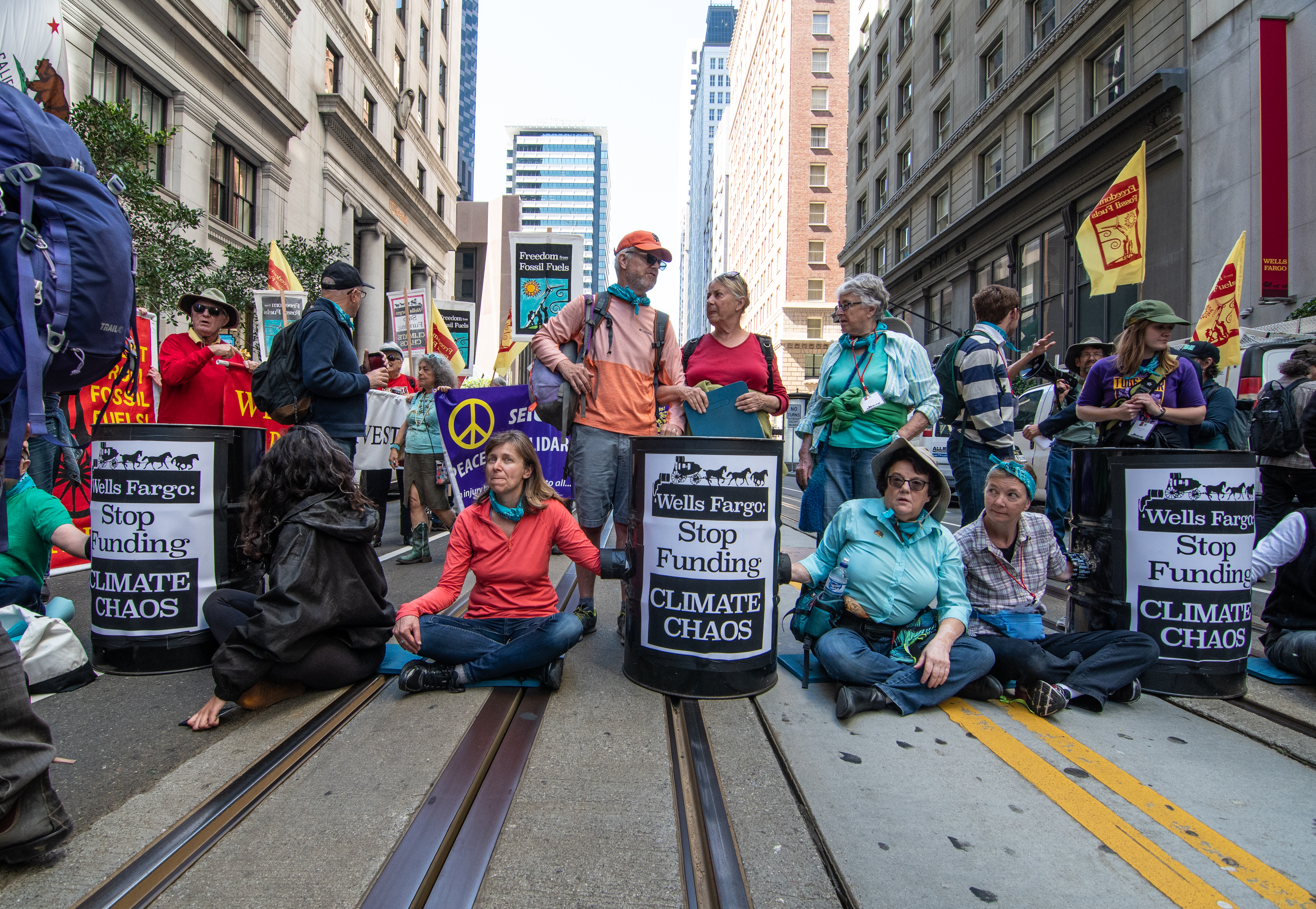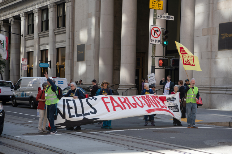 Wells Fargo Headquarters' Street Seized by "Oily Wells Fargo" Protest