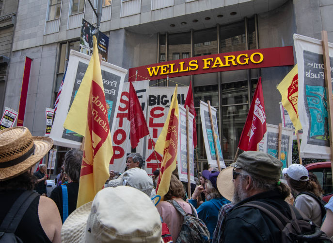 With speeches and songs, Wells Fargo was put on notice that its investments in fossil fuel industries were no longer tolerable.