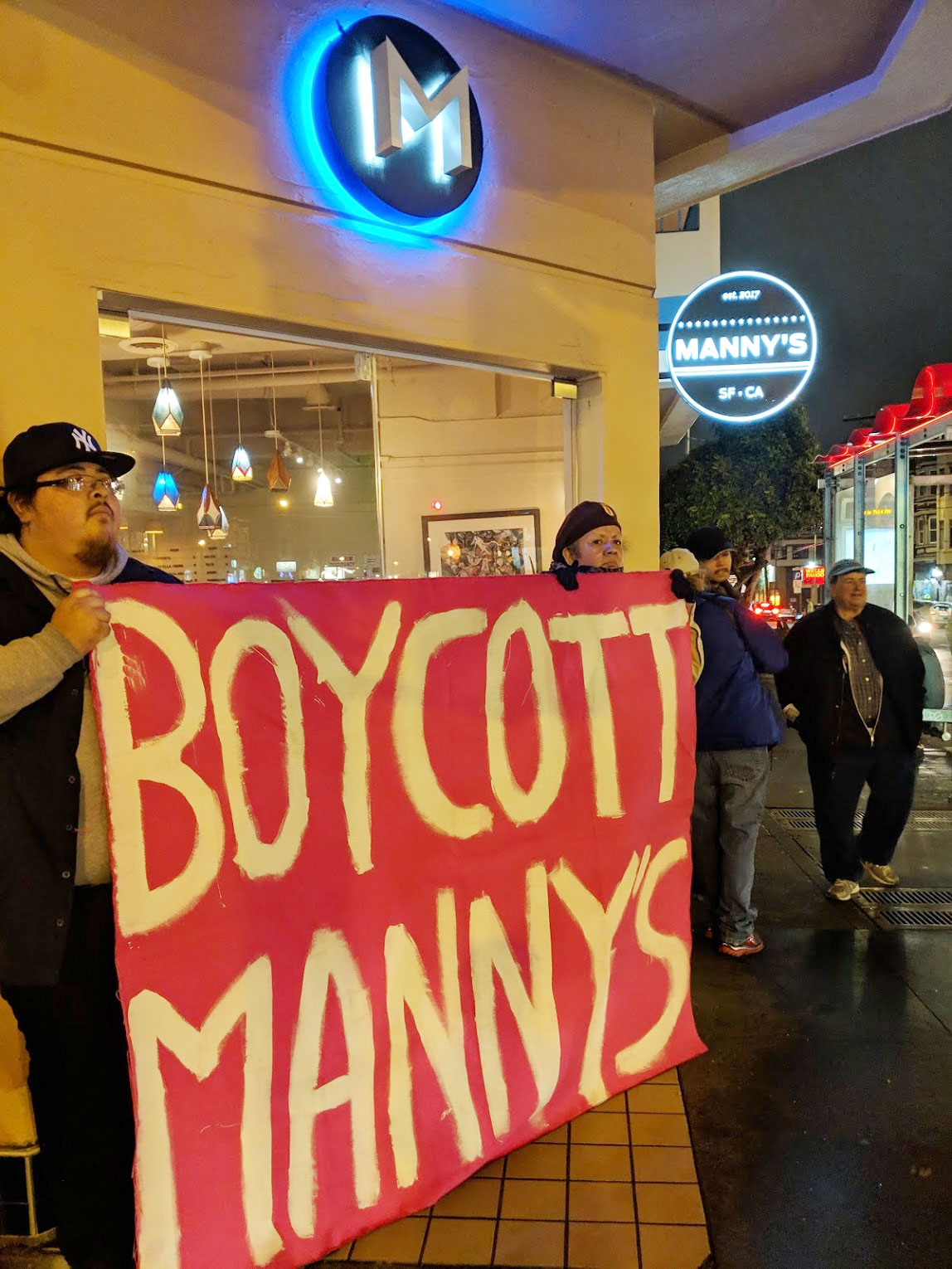 Many people have asked us why we chose to protest Manny's, when there are so many horrible things happening in the world right now. The reason is because Manny's represents and propels some of the worst problems affecting our low-income communities of color, such as racism, displacement, and policing, while using fake "progressive" political messages toward conservative ends.