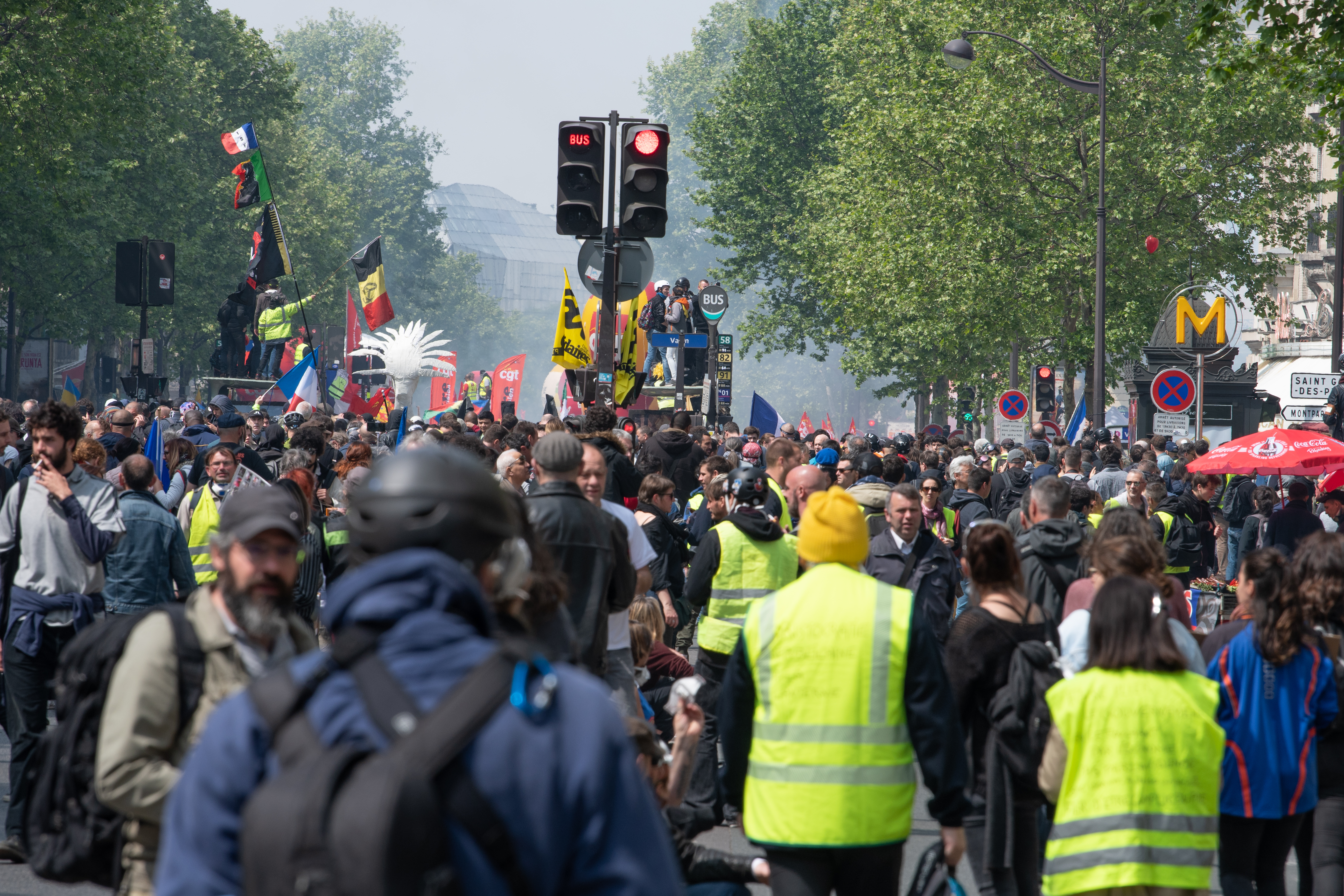 This May Day was different. No orderly assortment of leftist organizations but just two main sections. The new “Yellow Vest” protesting for the twenty fifth consecutive week and the traditional labor unions, each seeming to realize that they needed the other.