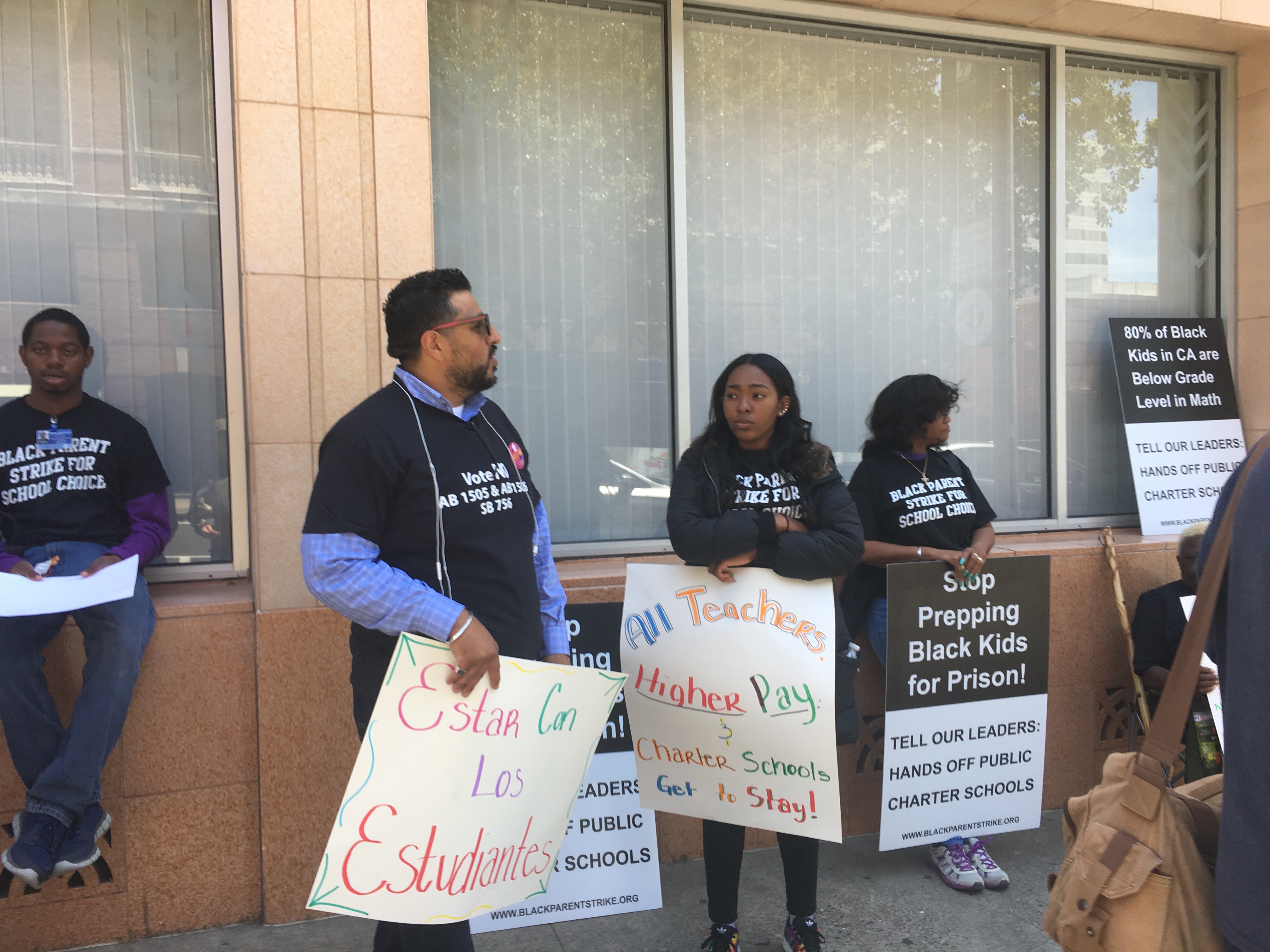 The California Charter School Association CCSA also rallied their African American supporters in front of their office in Sacramento and at the rally at the state building. They also sent these charter supporters to confront the public education rally.