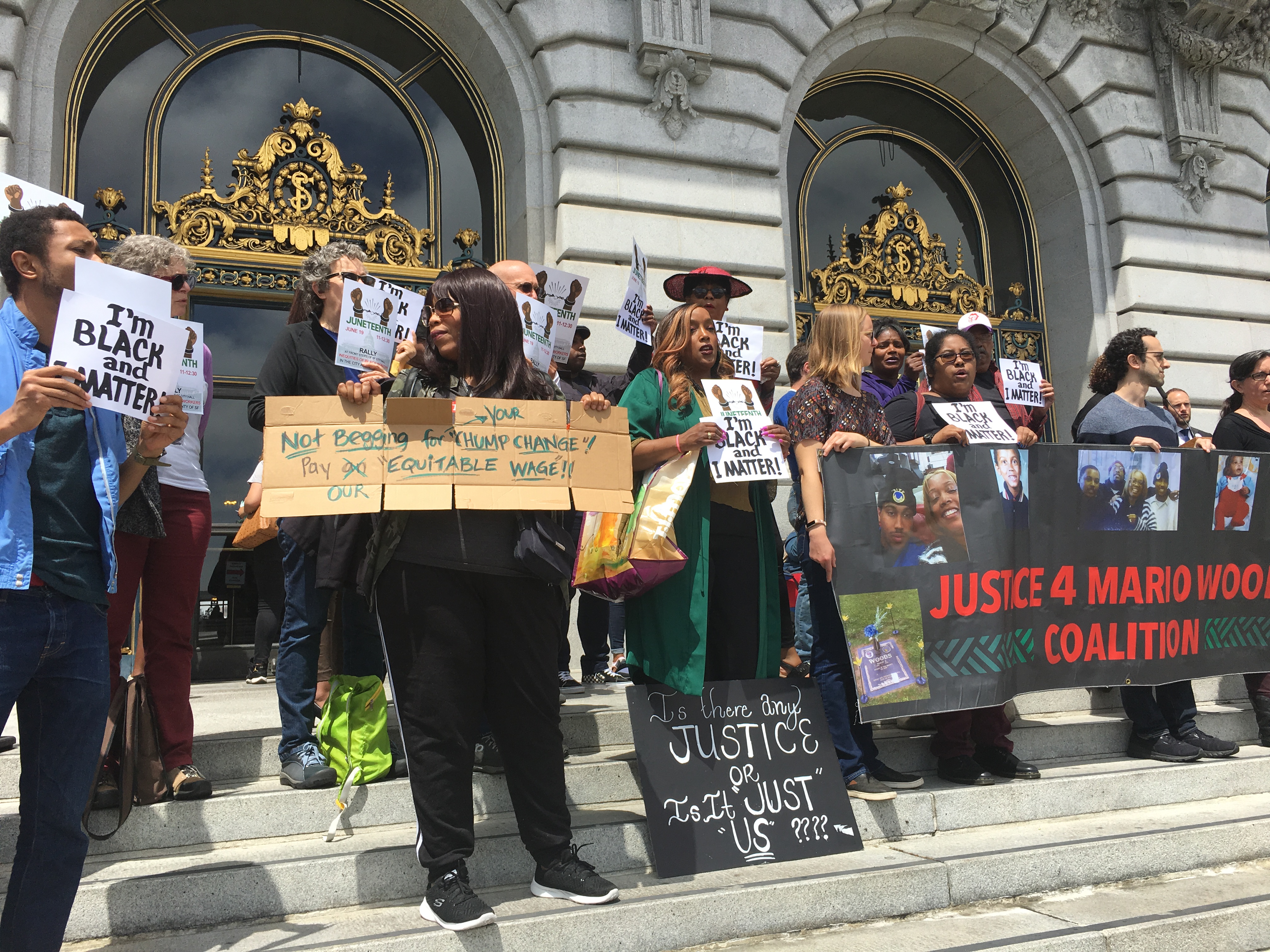 San Francisco city workers spoke out and rallied on Juneteenth June 19, 2019 in front of SF City hall. They talked about the systemic racism and terrorism against African American workers.