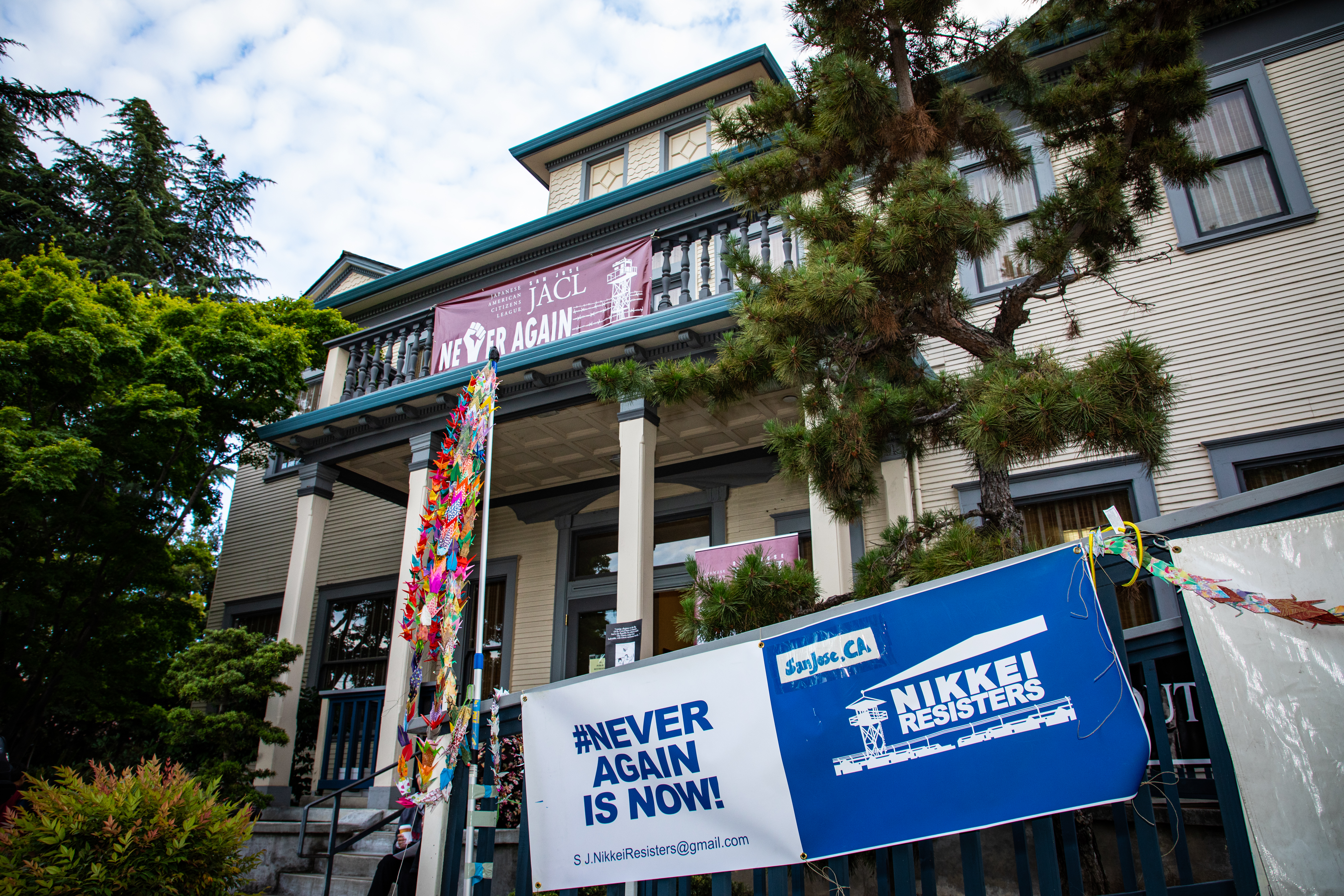 Members of the Japanese American community and allies gathered near the steps of the historic Issei Memorial Building in San José's Japantown on June 27 to say, "Never again is now."