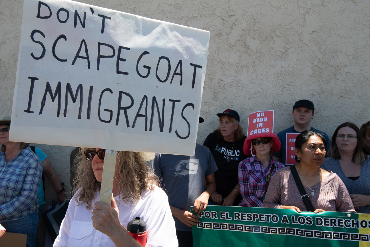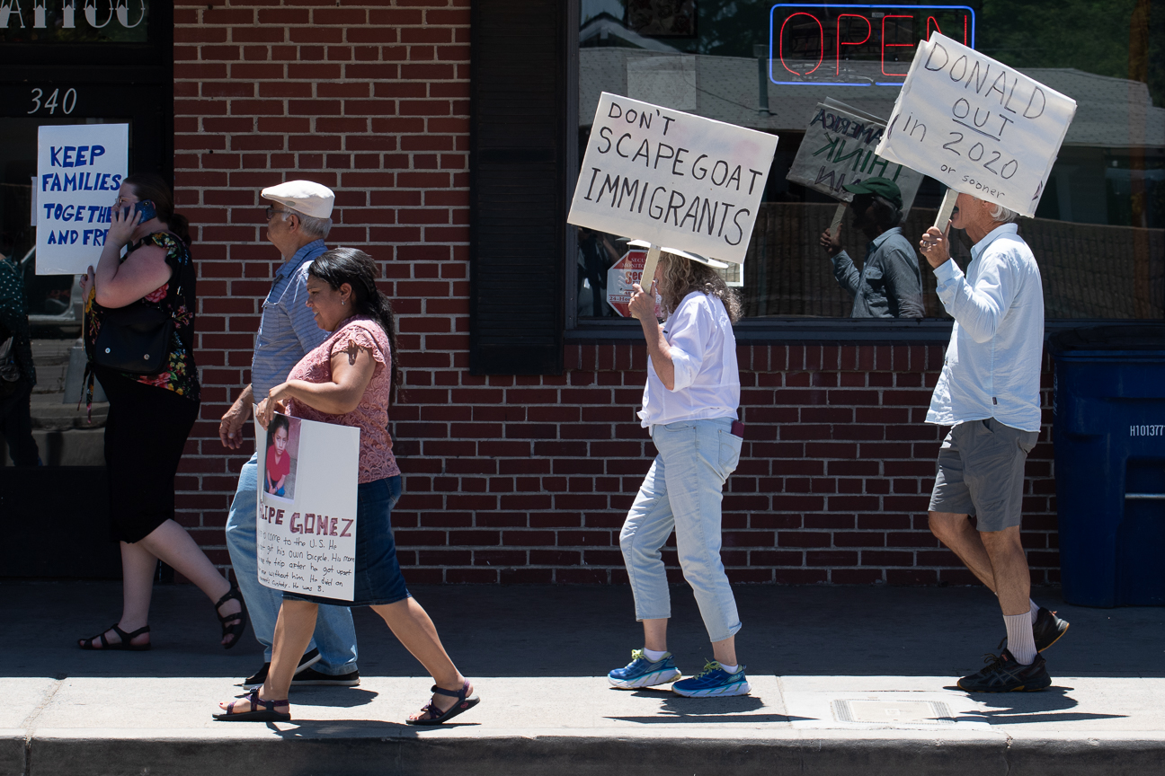 Around two hundred and fifty people came to Fresno’s Tower District to protest for immigrant rights on June 29. They met at noon and marched up and down Olive Street, from the Tower Theater to Palm Avenue, chanting and carrying signs. The sun was not as hot as usual for summer. Although there was concern about anti-immigrant counter-demonstrators, the march went without incident.