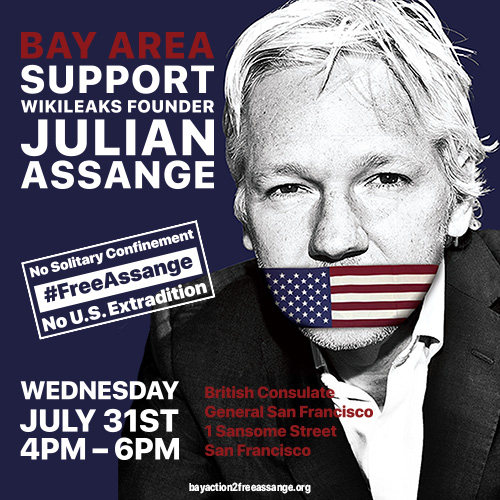 Join us July 31st at the British Consulate General in San Francisco to rally against the U.S. government’s attempt to extradite Julian Assange.