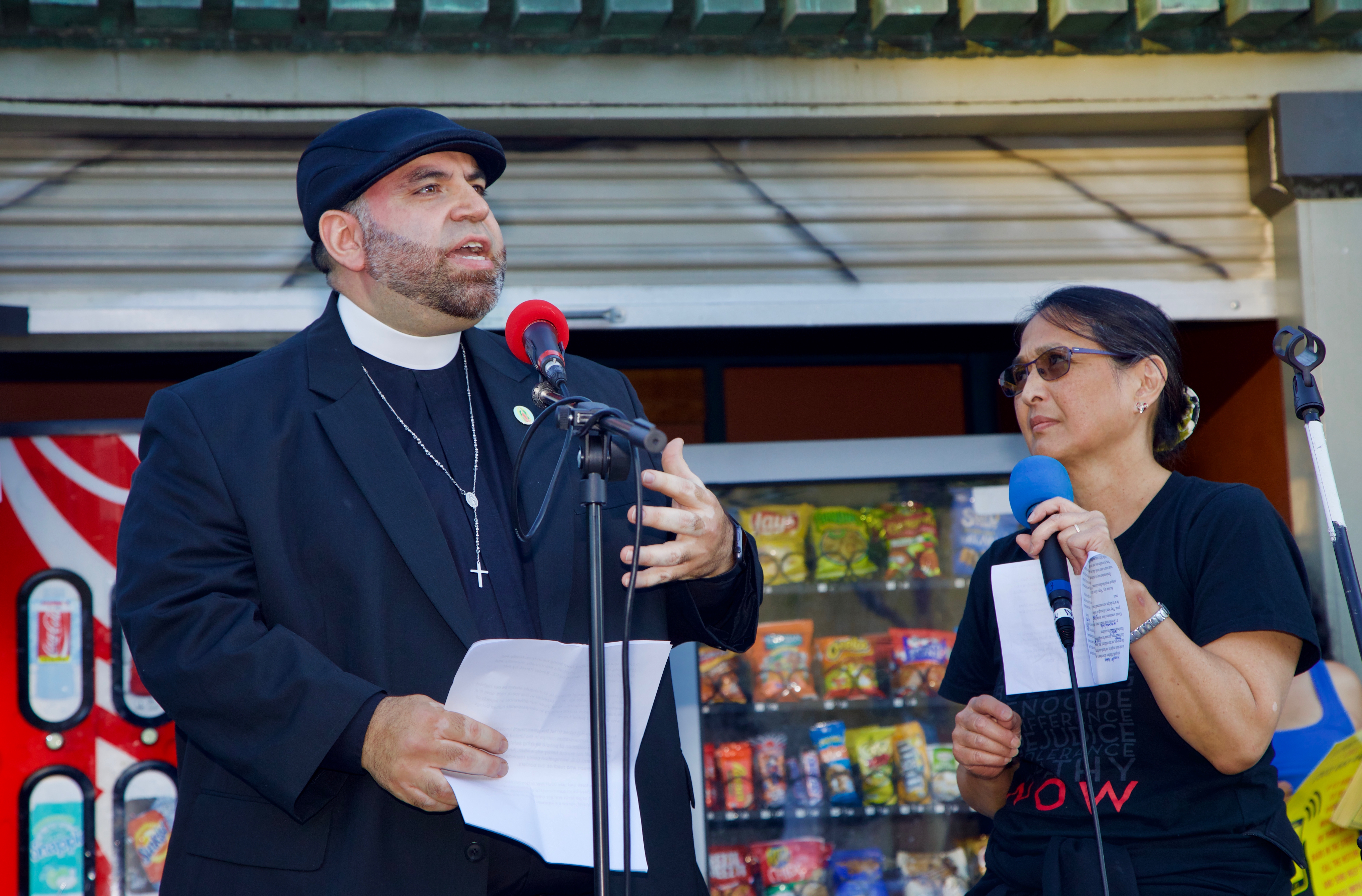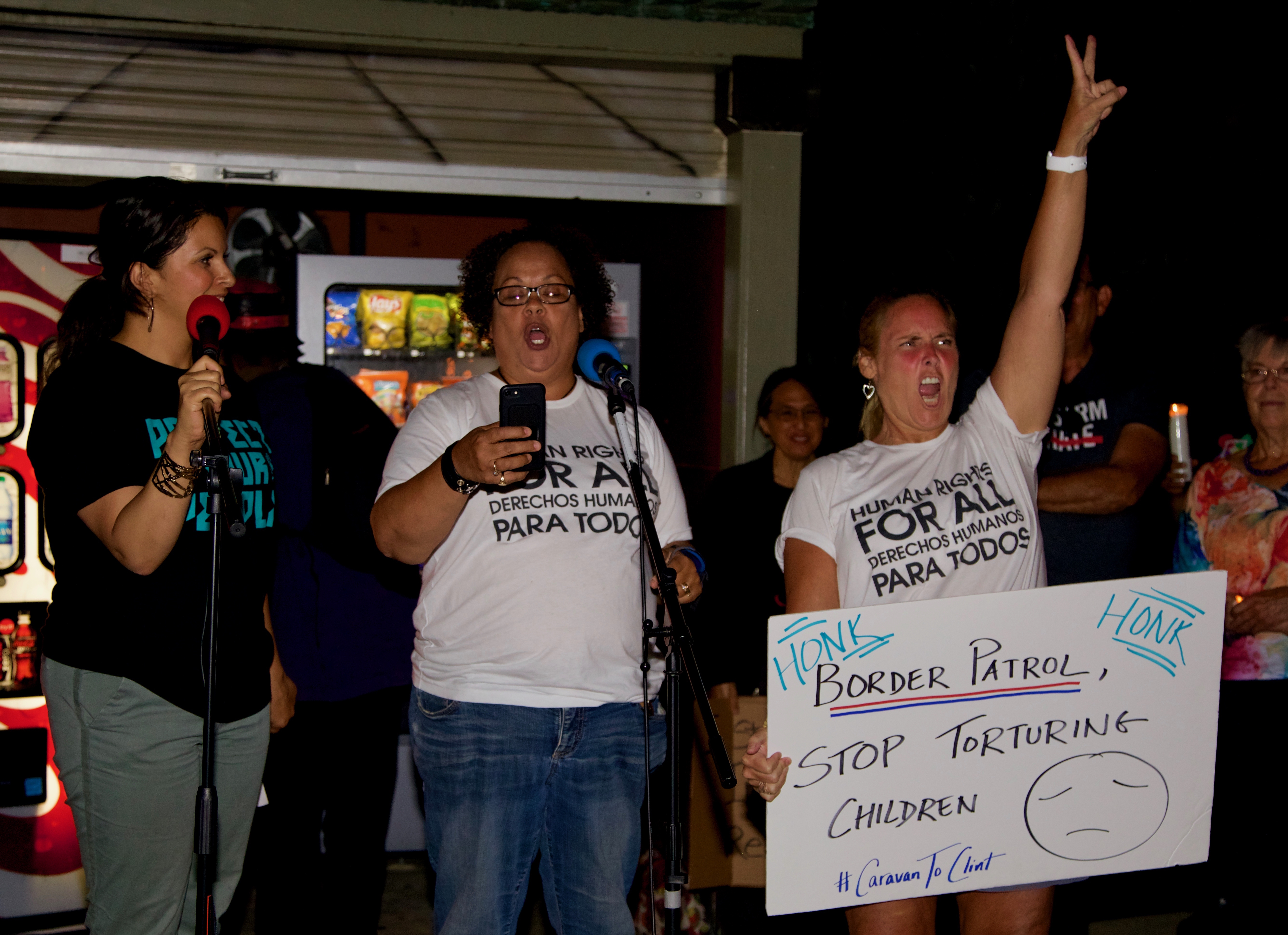 Adressing the crowd, Rev. Jorge Bautista, an eyewitness to the horrors on the border, said that prisoners in detention centers are subjected to torture, humiliation and even death. Member of the latinx volunteer community Charo Martinez spoke about the psychological harm to immigrants and their families.