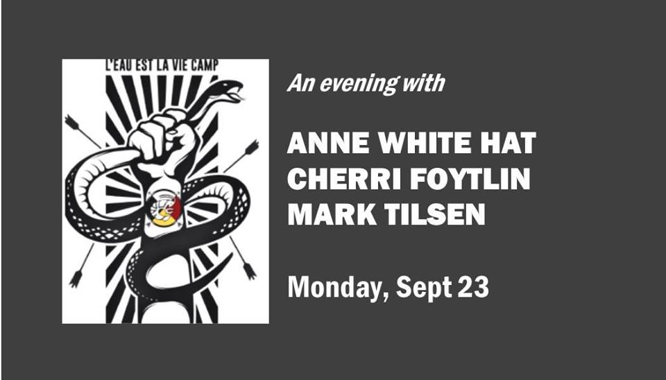 Join us for an evening of conversation with Anne White Hat, Cherri Foytlin, and Mark Tilsen to hear firsthand accounts from years of Indigenous led resistance to pipelines. Come hear from three of the most effective organizers on Turtle Island about ongoing work fighting back against Energy Transfer Partners, community resiliency in the Gulf South and visions and plans for how to fight back.