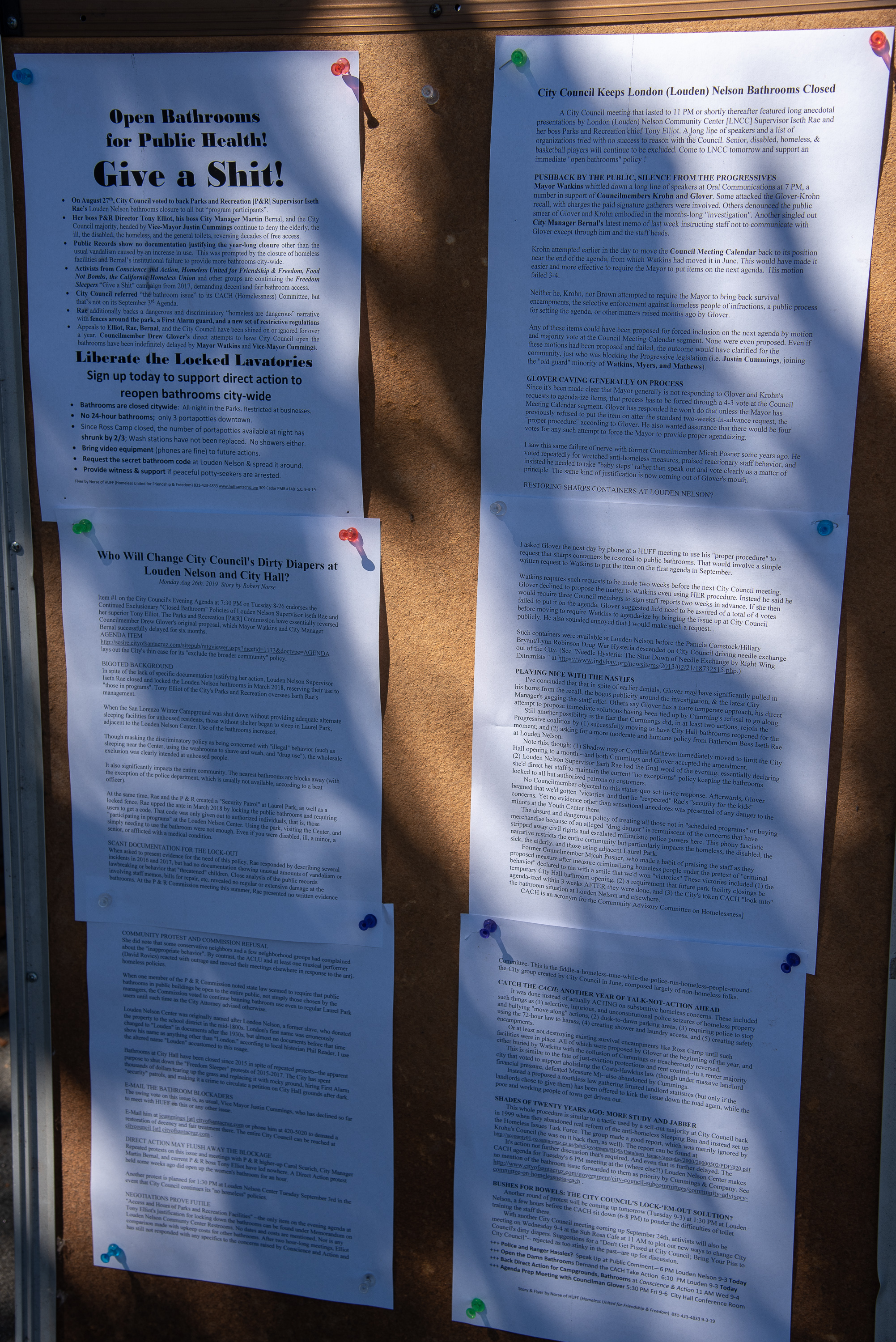The action to occupy the bathrooms apparently did encourage the Louden Nelson staff to leave the bathrooms open. Though this could be coincidental with a two-week vacation reportedly being taken by "No Access for the Homeless" Supervisor Iseth Rae.