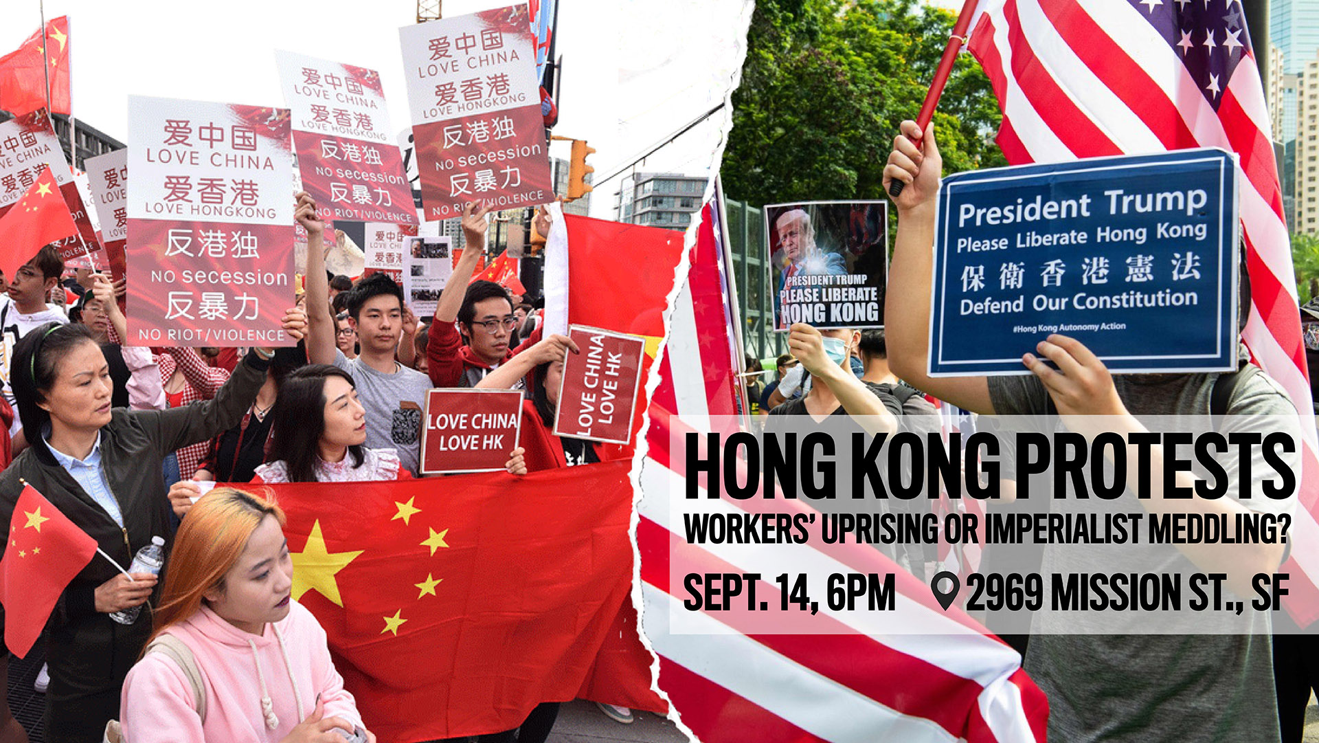Special guest speaker Sheila Xiao, a Los Angeles-based organizer with the PSL, will discuss the legacy of British colonialism in Hong Kong, the origins of today's protests, the corporate media's pro-West narrative and the complete blackout of massive pro-China counter-demonstrations.