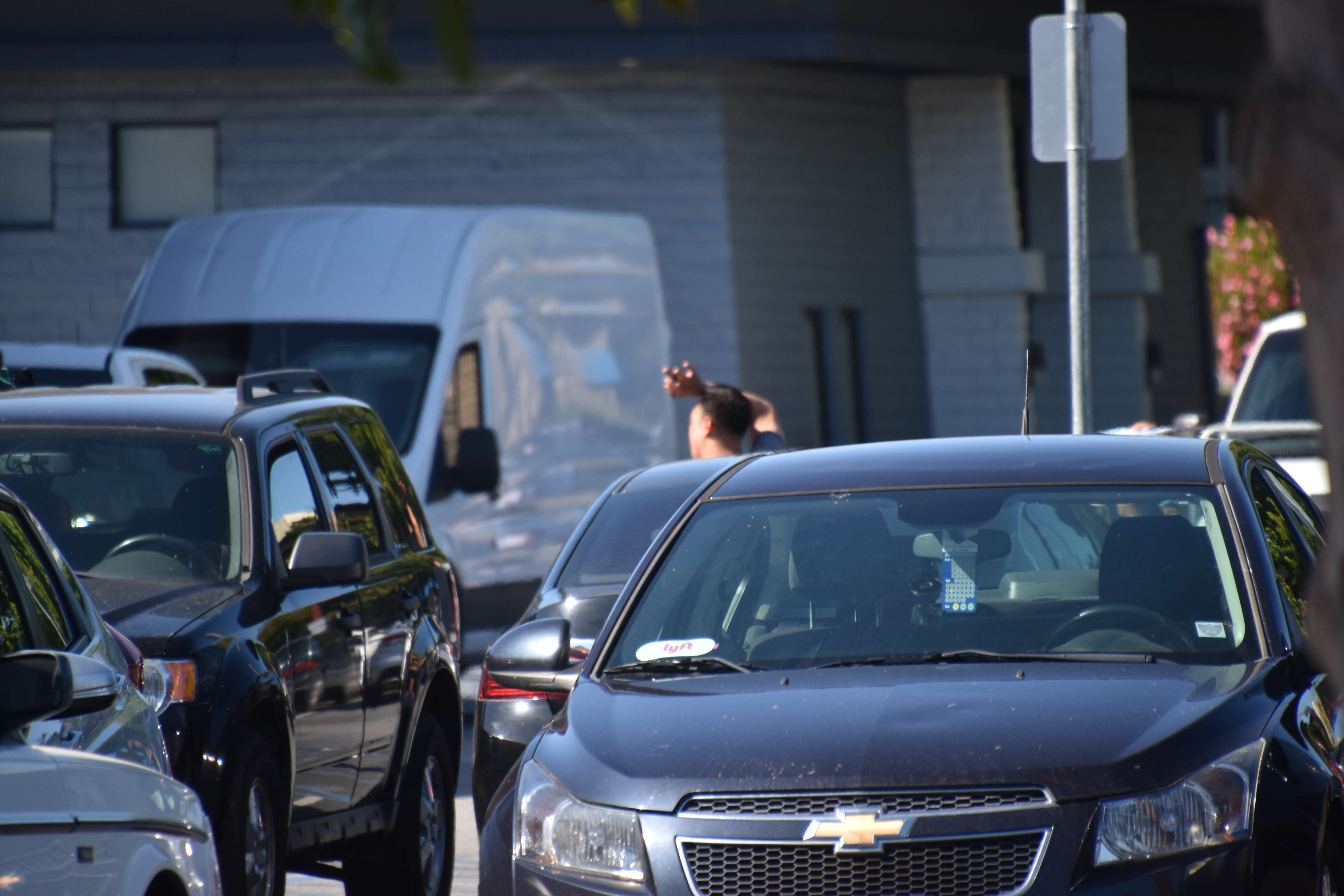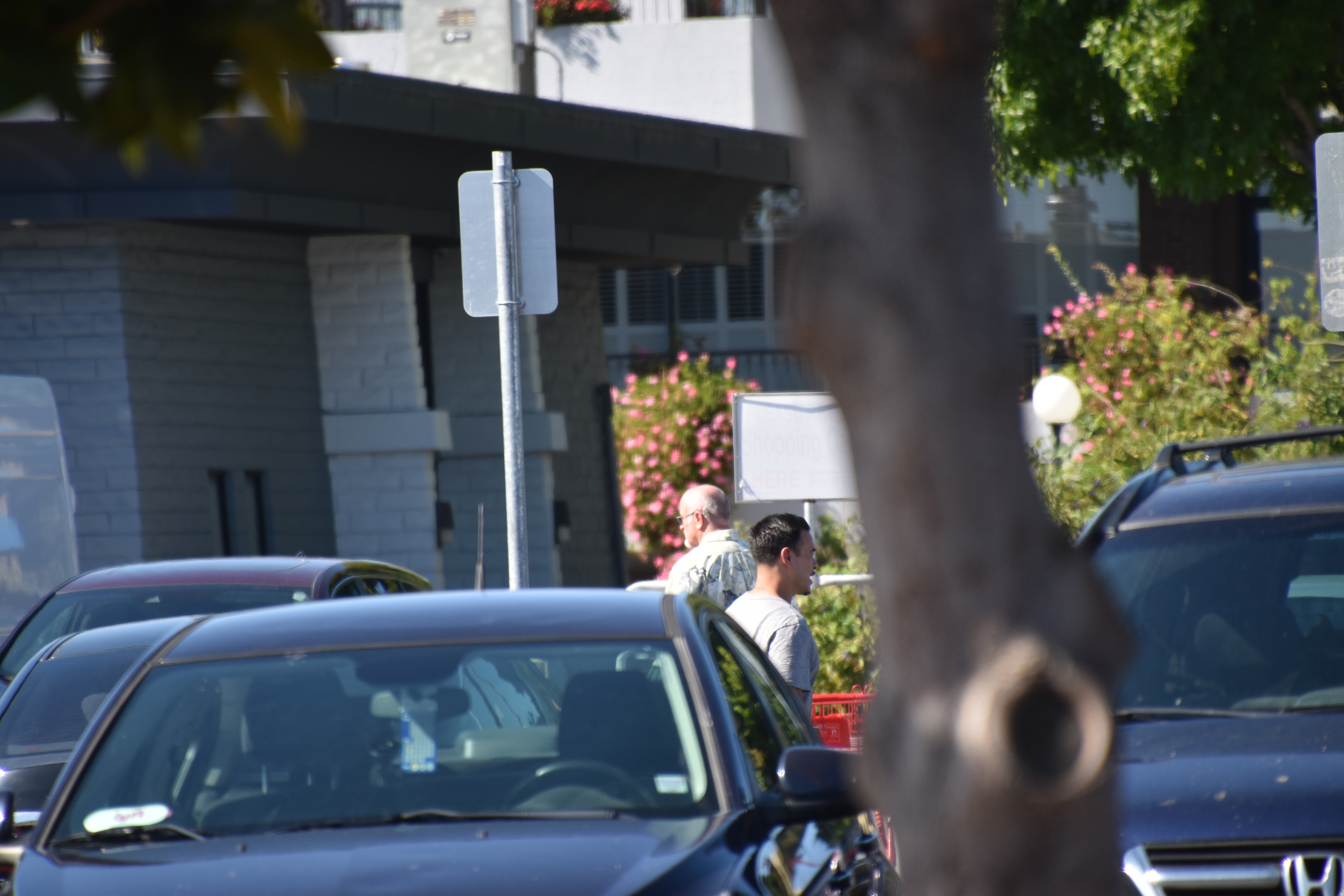 I took these few pictures of him while he aggressively went up to several people! I moved from the parking place I was parked in, at the front of the store. I left the lot, but returned, and parked further away. I continued to watch him until the security guard noticed me photographing from where I was. The security and the manager of Traders Joe's seemed to get concerned with my taking the photos. They may have thought that I was casing the store.