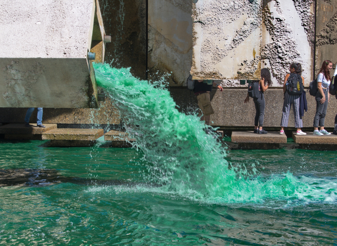 circuitous route to the Embarcadero Plaza. The large fountain's water was