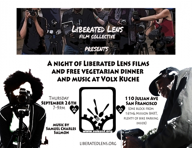 Come for a free delicious dinner at VolxKuche (http://vokusf.org/) and watch short films made by members of Liberated Lens!