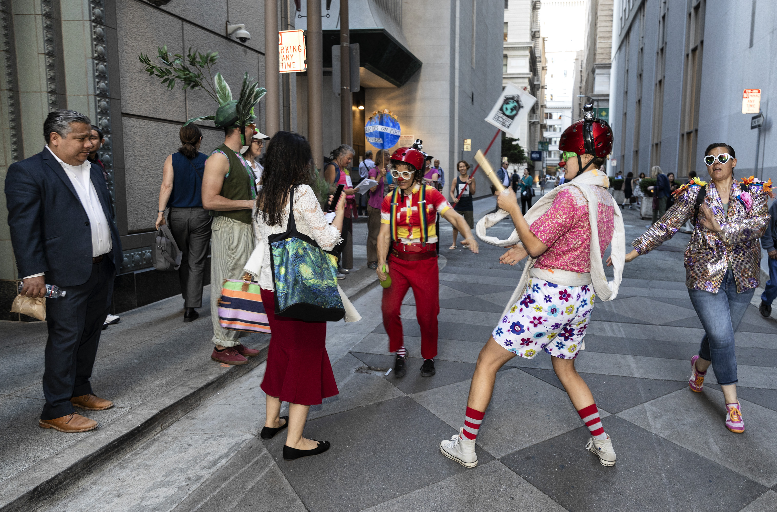Protesters stood in these streets causing traffic to back up in San Francisco's financial district Wednesday morning: Montgomery Street between Pine and Sacramento streets and California Street from Sansome to Kearny streets. Their goal? To block access to the offices of major banks.
