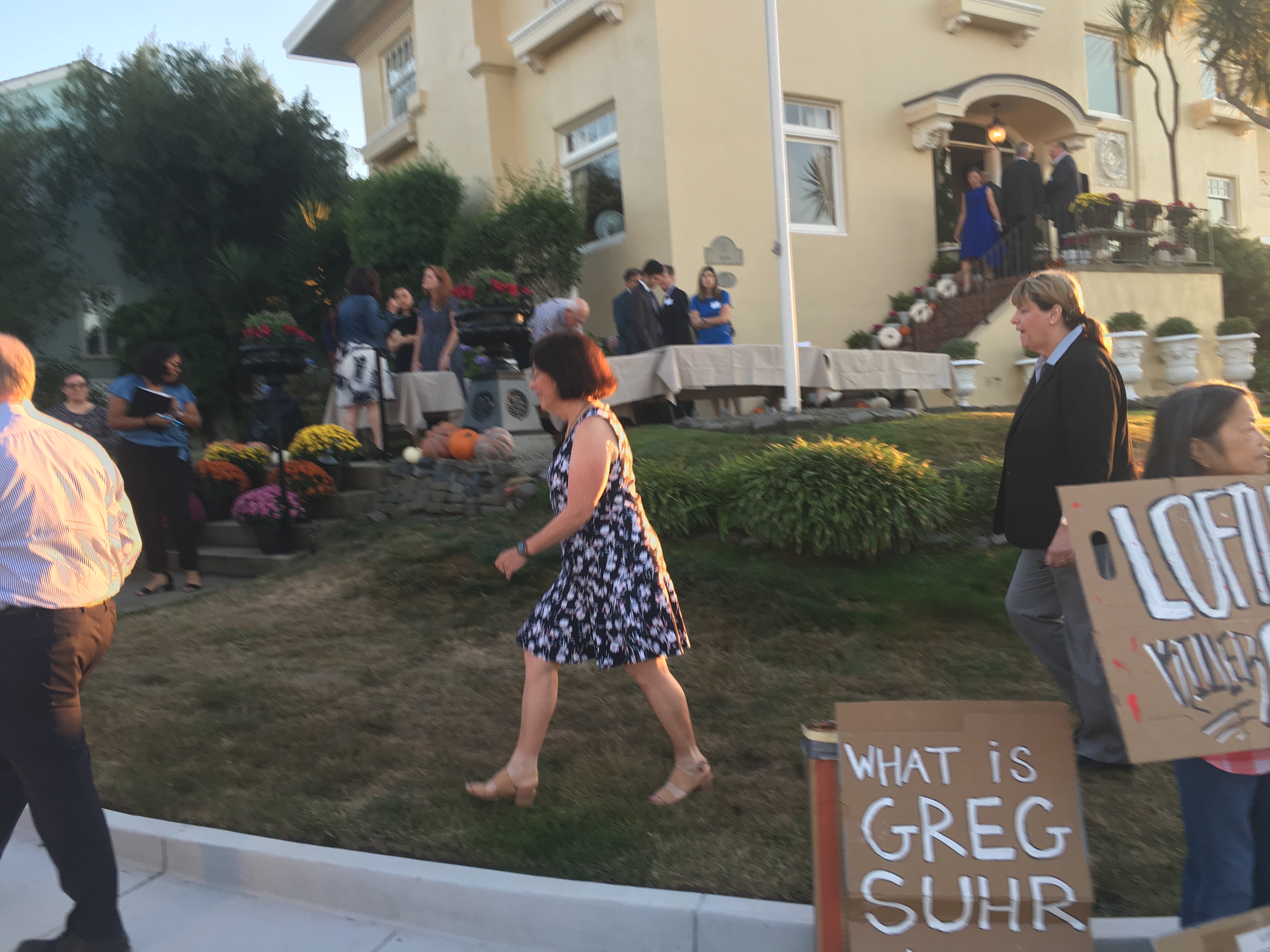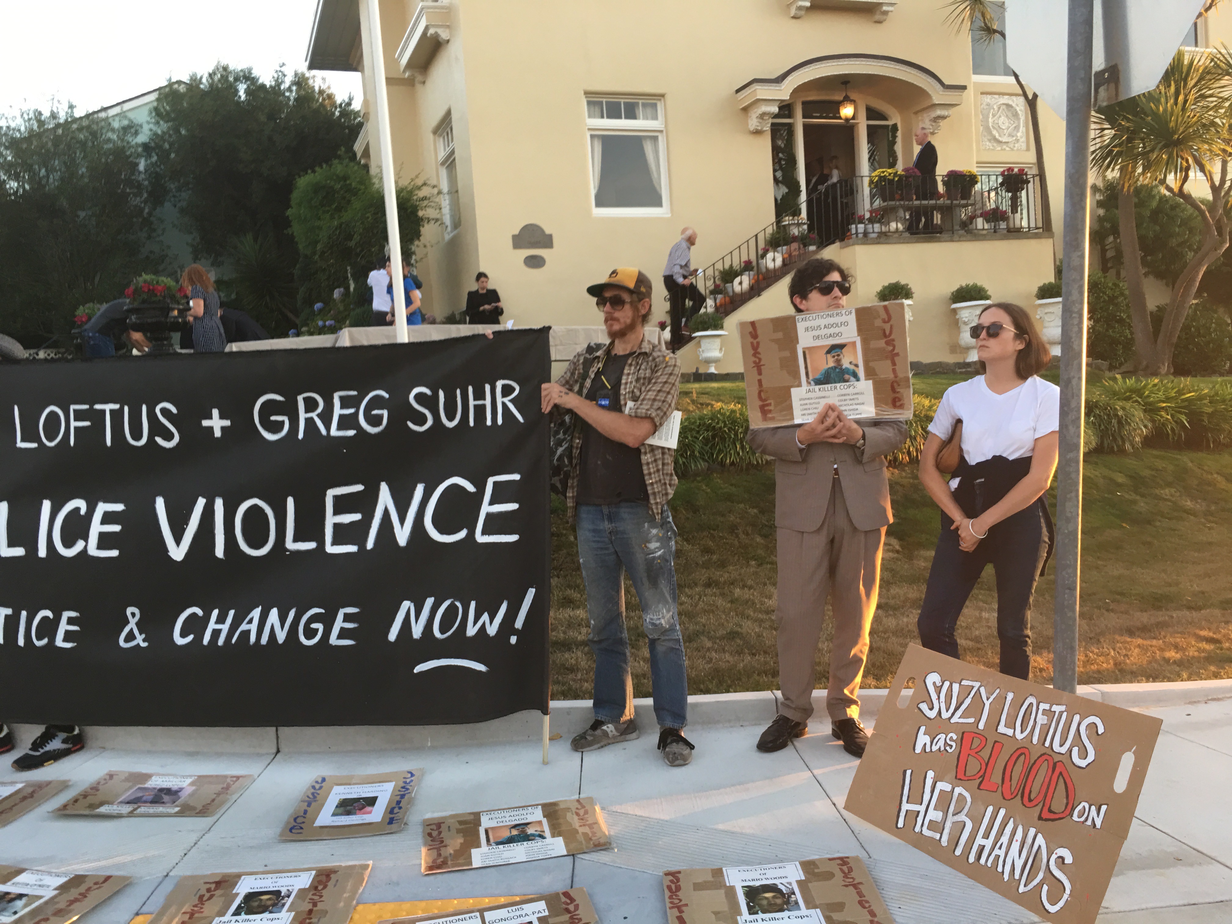 Suzy Loftus a candidate for San Francisco was protested when she held a fundraising party. She has been endorsed by former San Francisco Police Chief who was involved in covering up police murders and also refusing to act against racist police texting in the department. He was supposed to be at the fundraiser but was a no-show.