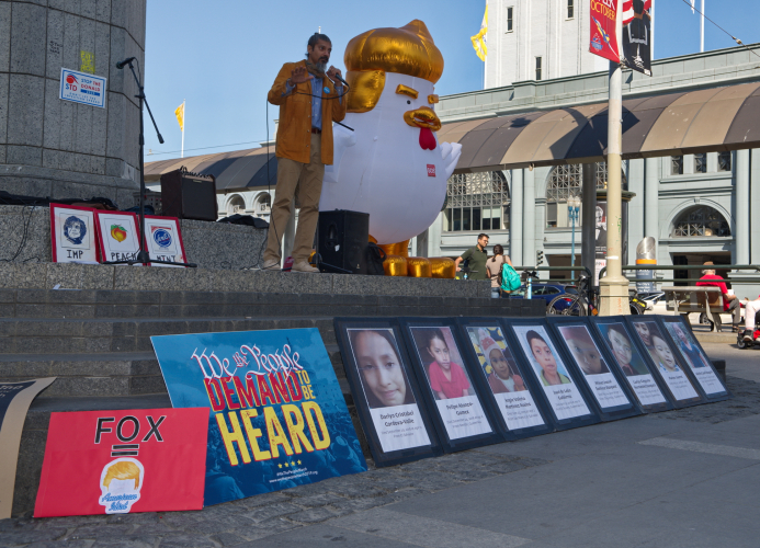 The screaming fleet week war planes were not able to drown out the speakers and performers demanding Trump’s impeachment.