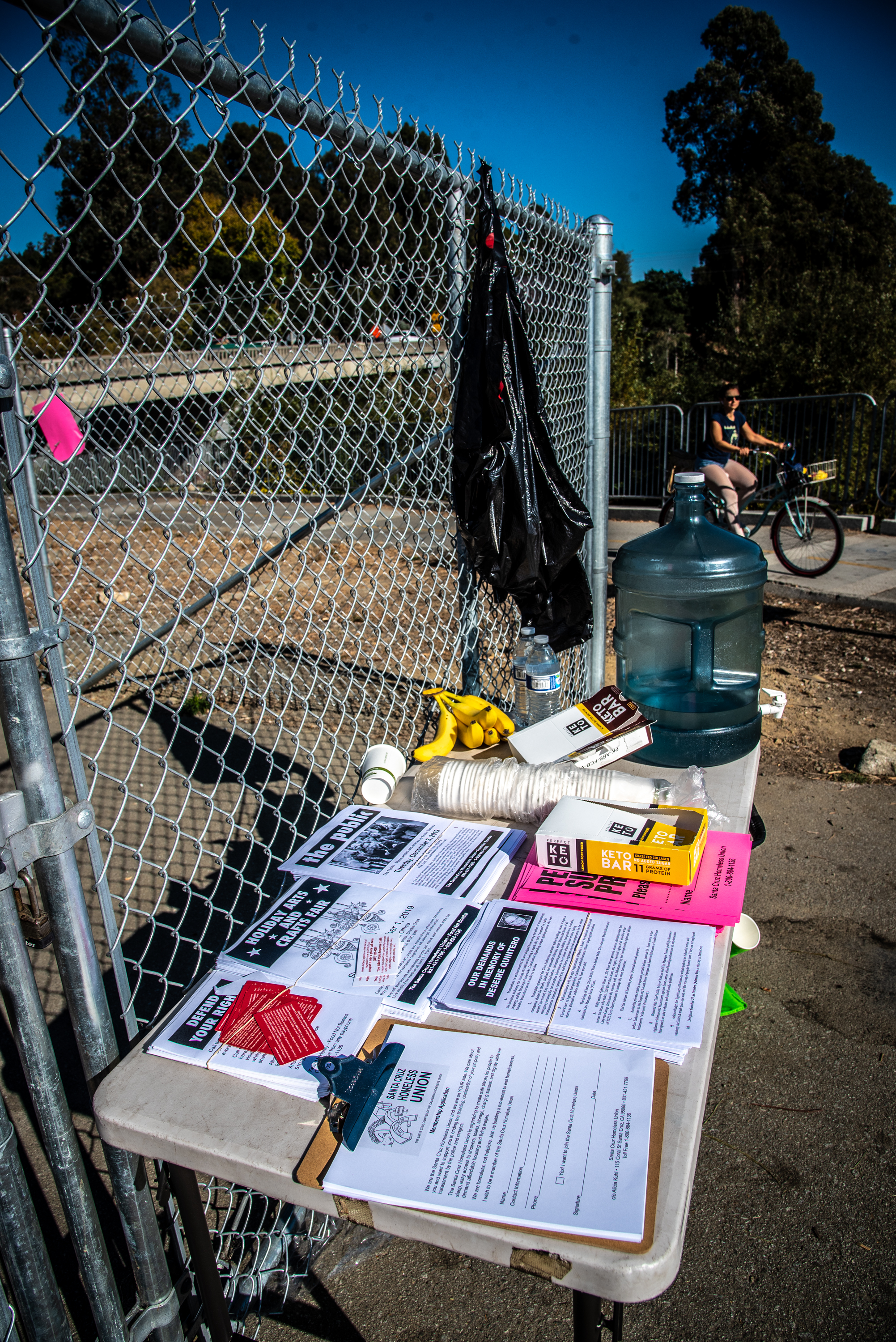 One woman who was moving her possessions over to the camp at about noon was communicating to people who were passing by on the San Lorenzo Riverway, and encouraging them to join her.