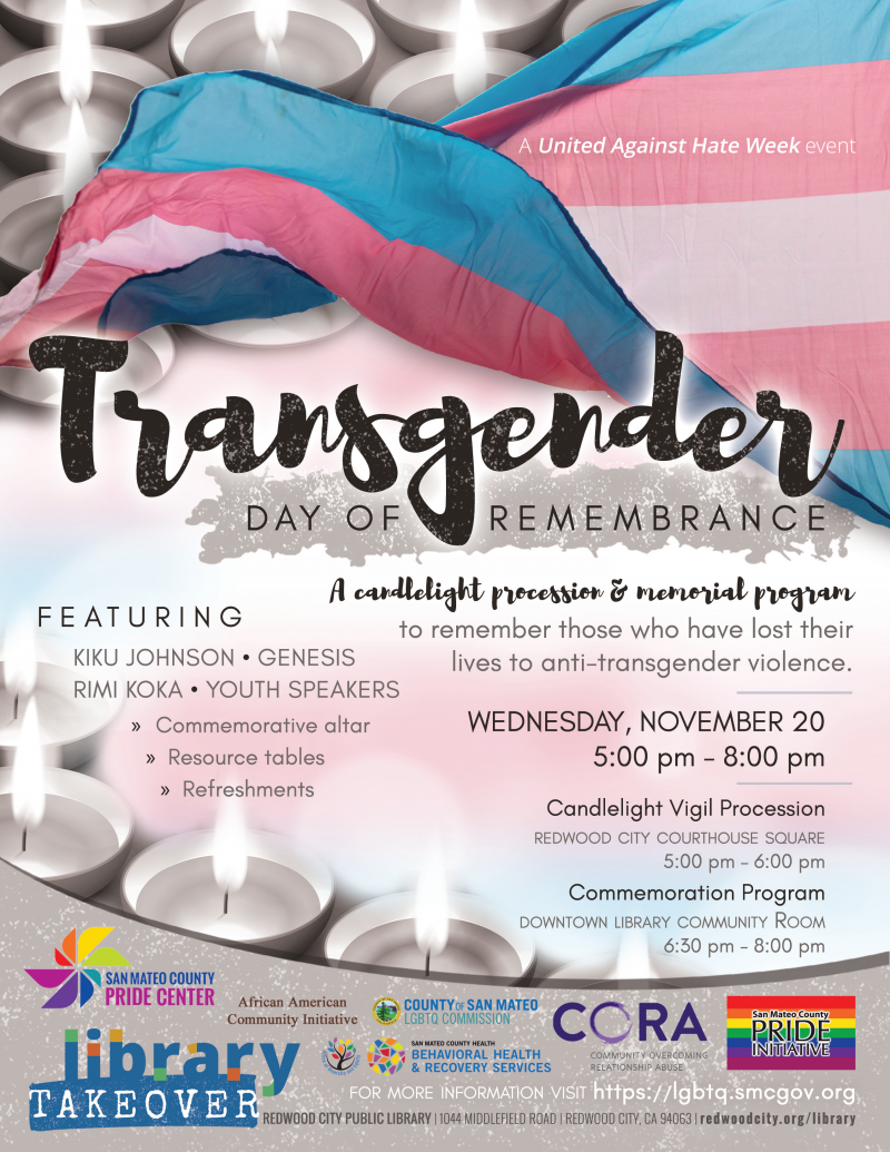 A candlelight procession and memorial program to remember those who have lost their lives to anti-transgender violence. Part of the Library Takeover Program Series.