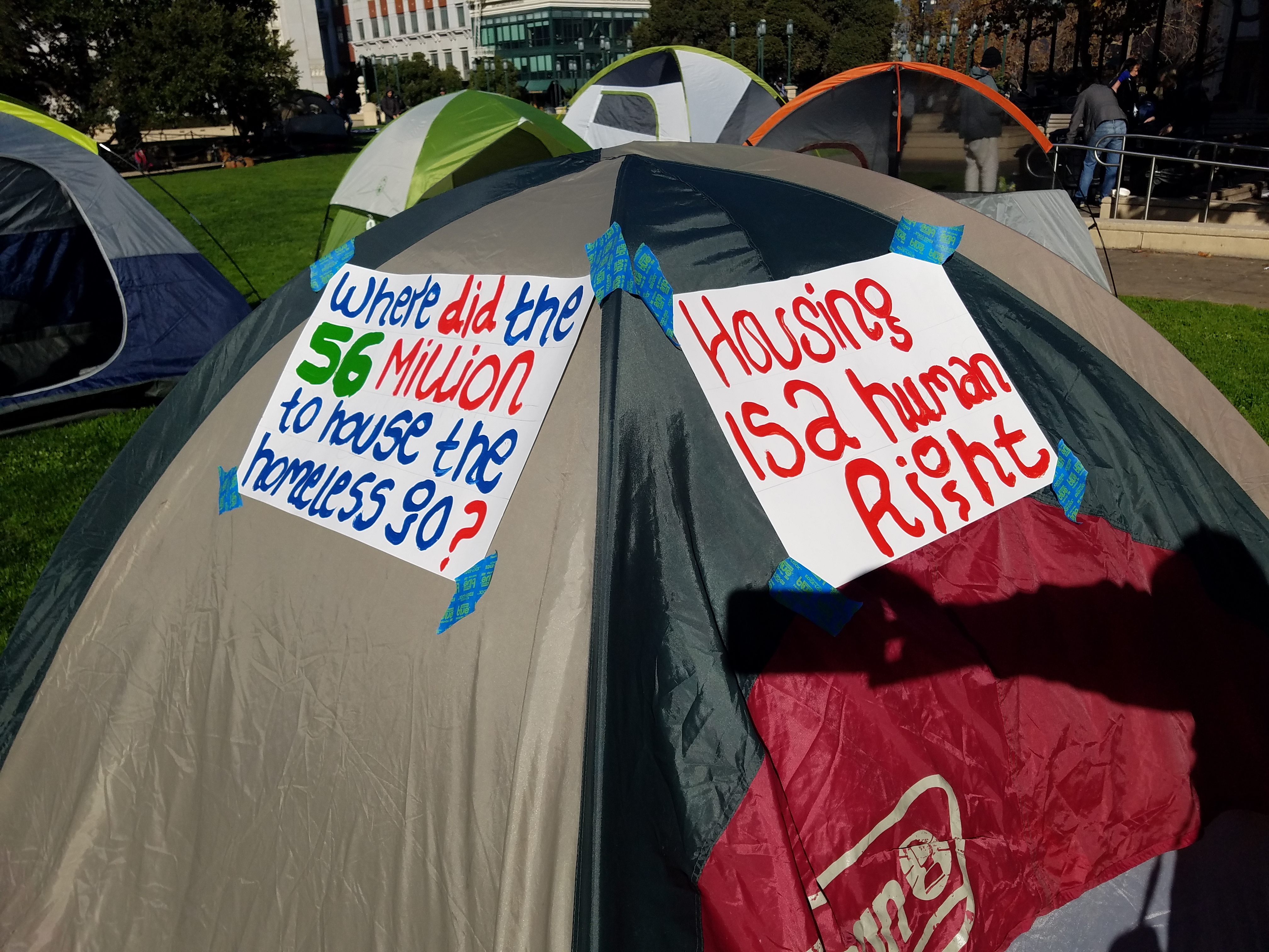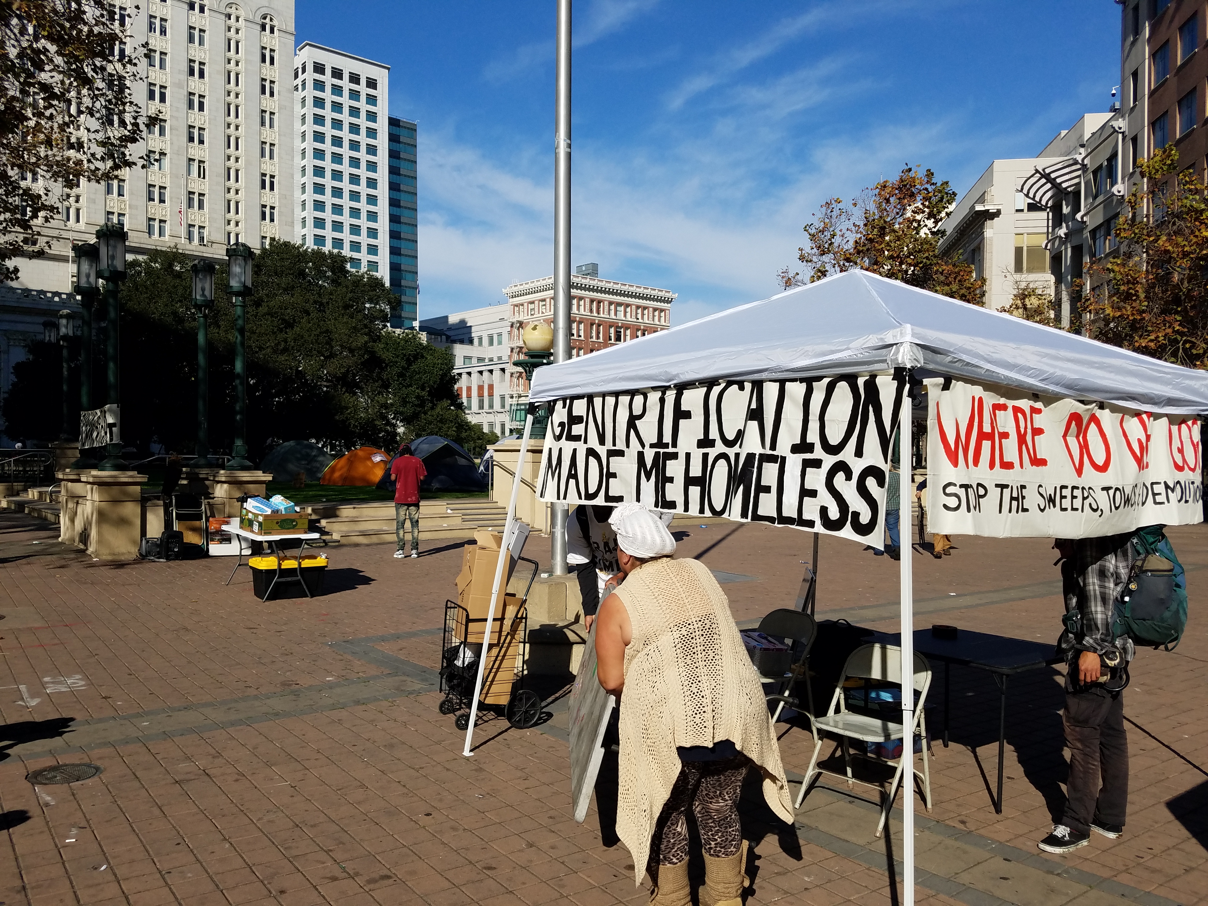 Tents are up in Oscar Grant Plaza in front of Oakland City Hall to protest the city's never ending homeless encampment demolitions and evictions, its lack of seriousness and urgency in addressing the housing crisis. If you can support, come by!