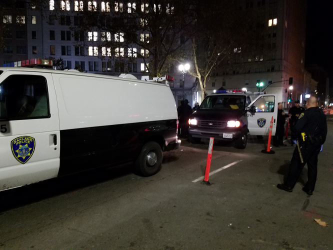 There is no way Oakland police came loaded for bear and jailed nearly two dozen protesters in all without Schaaf's express consent. Most likely the attack came under her direct orders. Imagine the phone calls between the mayor and her various minions that day. To be a fly on the wall. That the city began their assault at nearly midnight, with at least 75 uniformed police officers and a full DPW crew called to duty, presumably rousted from their homes late on a Sunday night, indicates that Schaaf meant business. That's a lot of overtime pay, and the overall costs for city's actions that night presumably were in the tens of thousands when all related expenses are factored in.
