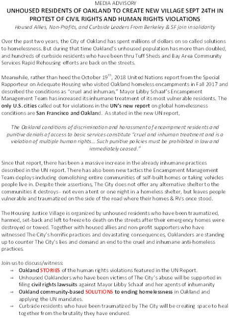 Oakland unhoused neighbors create Housing Justive Village at City Hall (report from morning)
