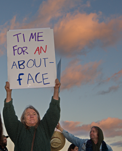 In a novel tactic, one of the Grannies brought her own traffic cones to guide traffic and call attention to the protest.