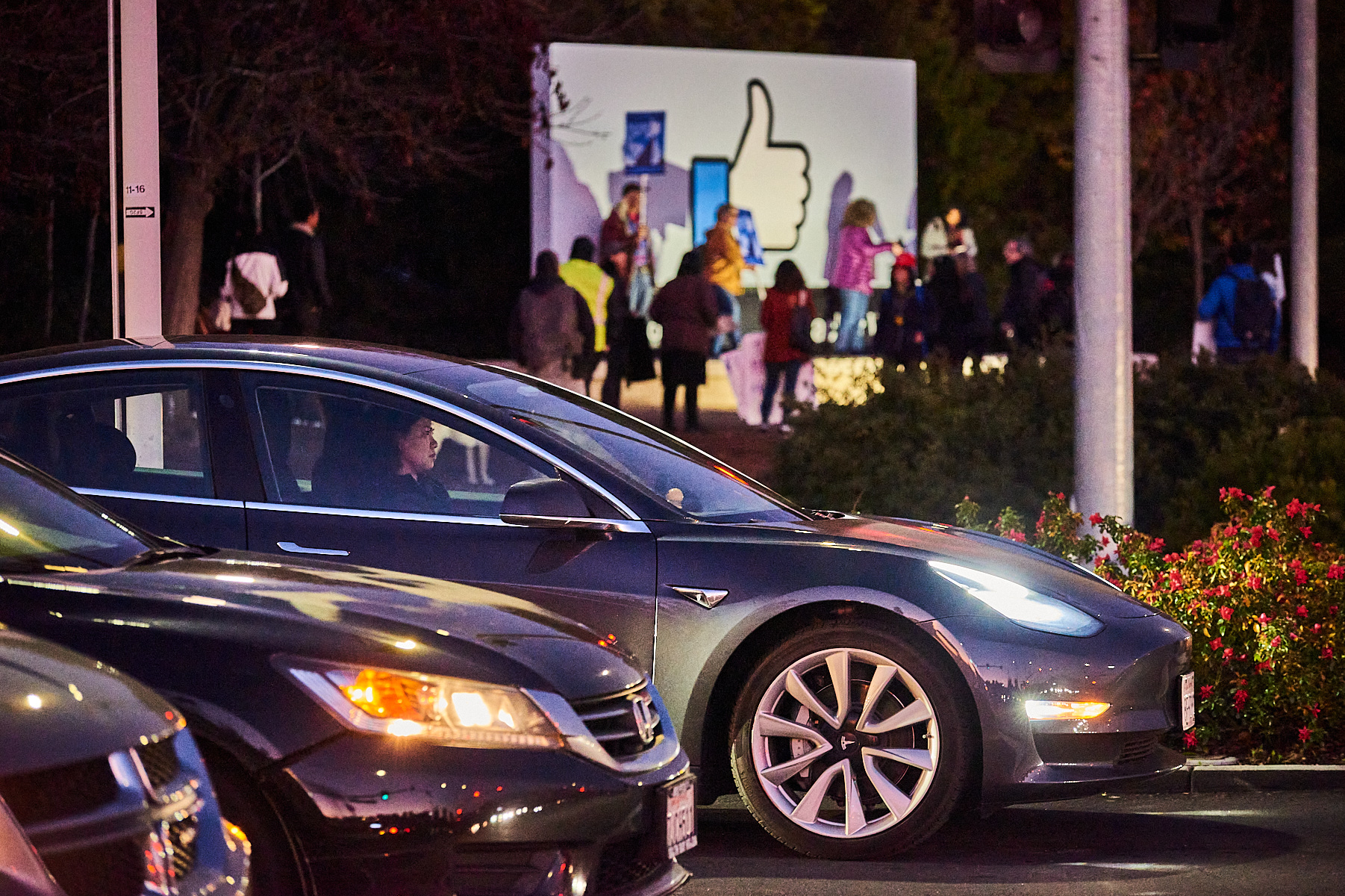 They complained that the gigantic platform is rife with electoral manipulation and has grown too powerful. Raising signs, they chanted, sang and spoke out at a rally across the street from the corporate HQ before marching onto the property to pose in front of the iconic billboard.