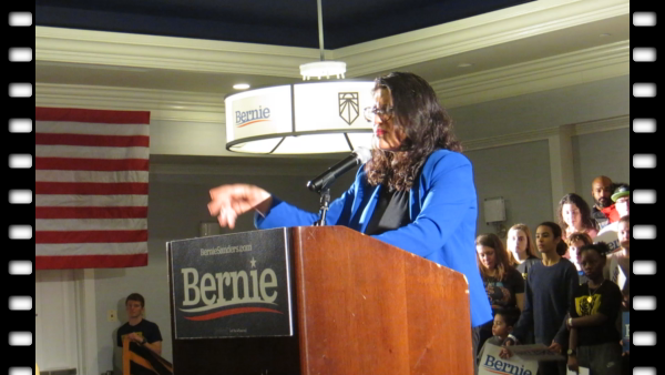 In 2 short video clips, Rep. Tlaib decribes how it feels to say "President Bernie Sanders" and then explains how he deals with shameless gentrifiers.