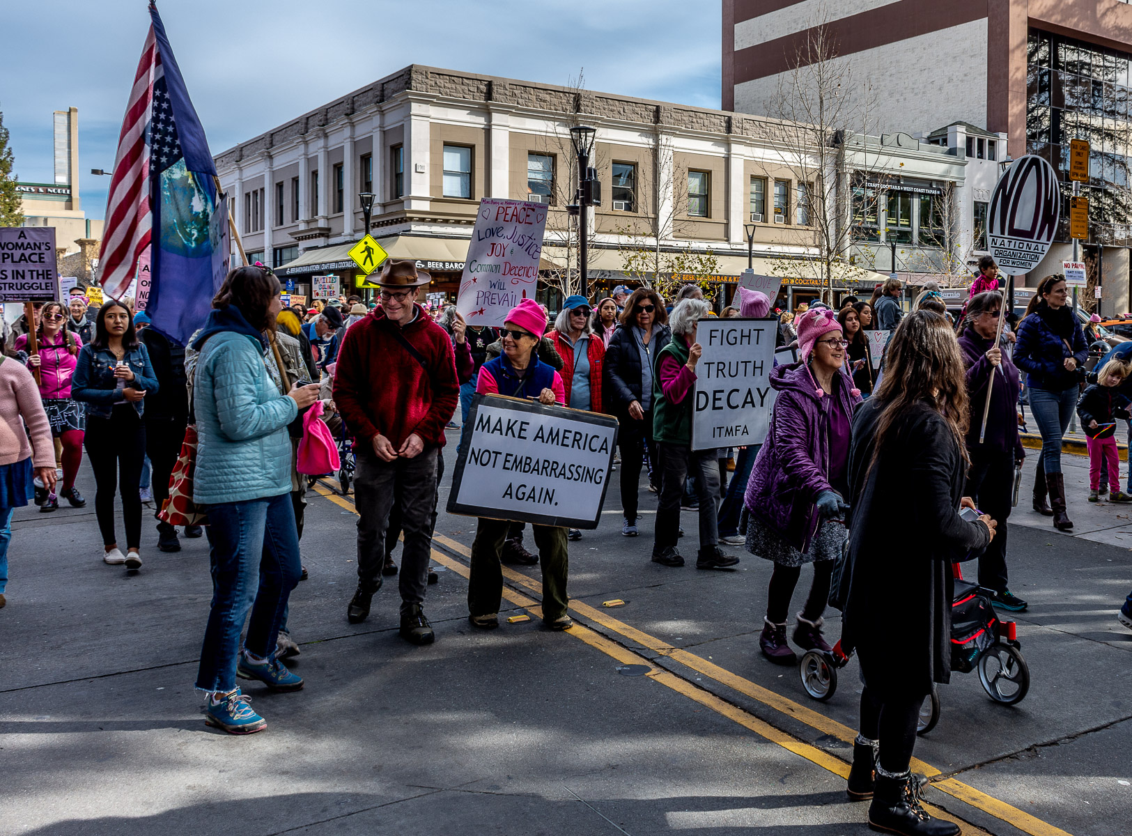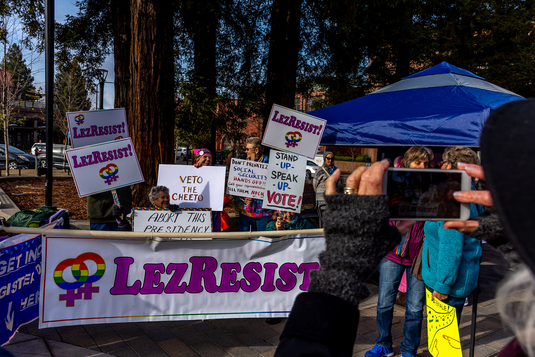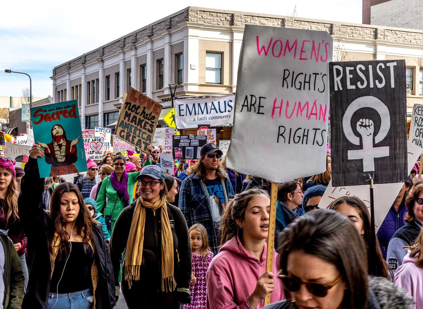 Signs expressed calls for disability rights, impeachment, climate justice, LGBTQ resistance and other urgent concerns. All made for a colorful and exciting event that drew people of all ages from Sonoma County and beyond.