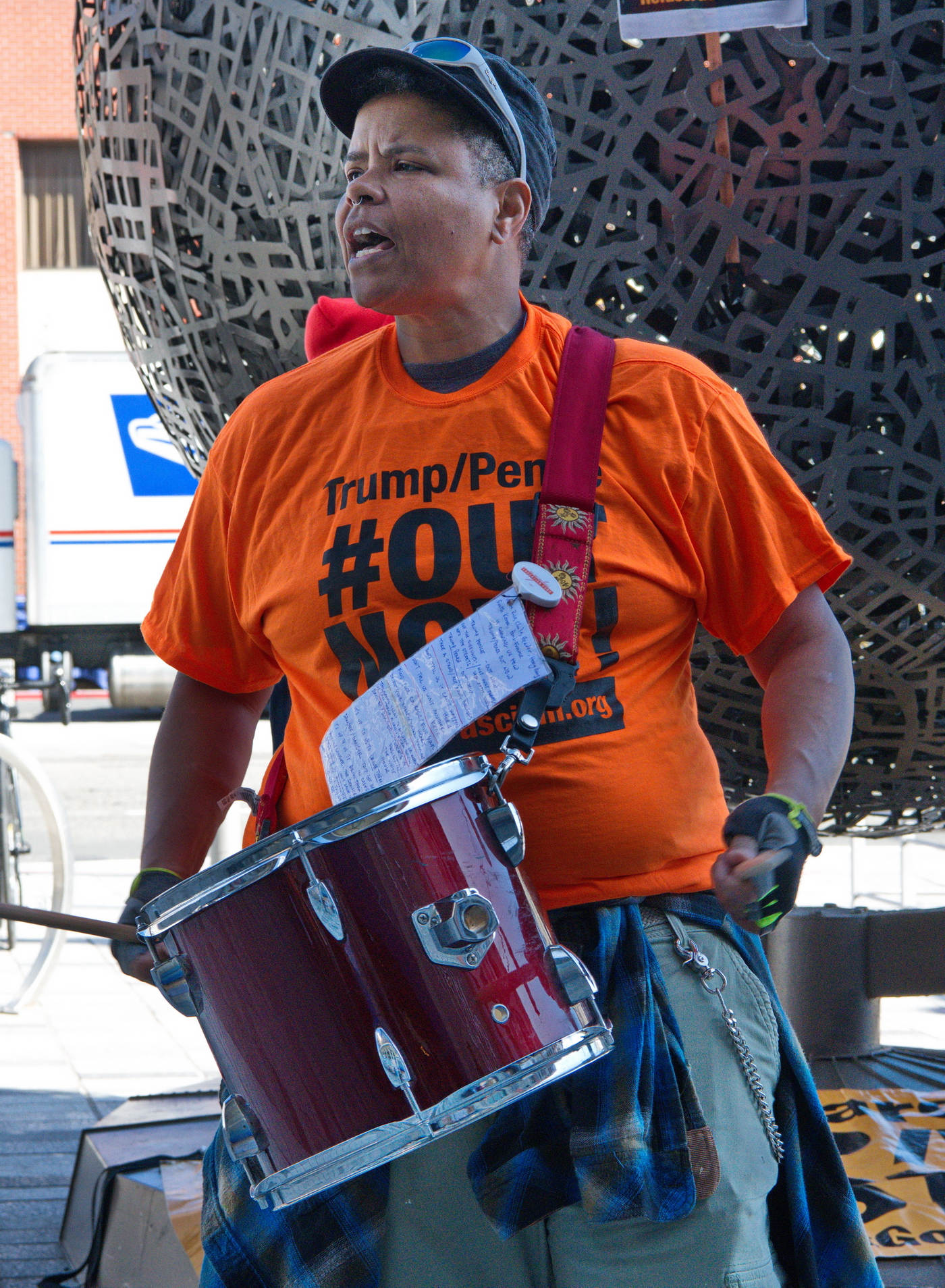 A handful of protesters from "Refuse Fascism" protested the sham senate Trump "trial".At the Downtown Berkeley Bart station plaza, activists in orange hats and shirts drummed and marched in protest of Trump's "acquittal".