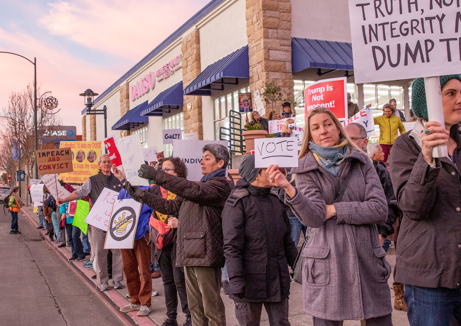 Feb. 5, 2020. In the East Bay city of El Cerrito, the call went out to "flood the streets to protest against this reprehensible cover-up and despicable GOP attempts to destroy our democracy!"