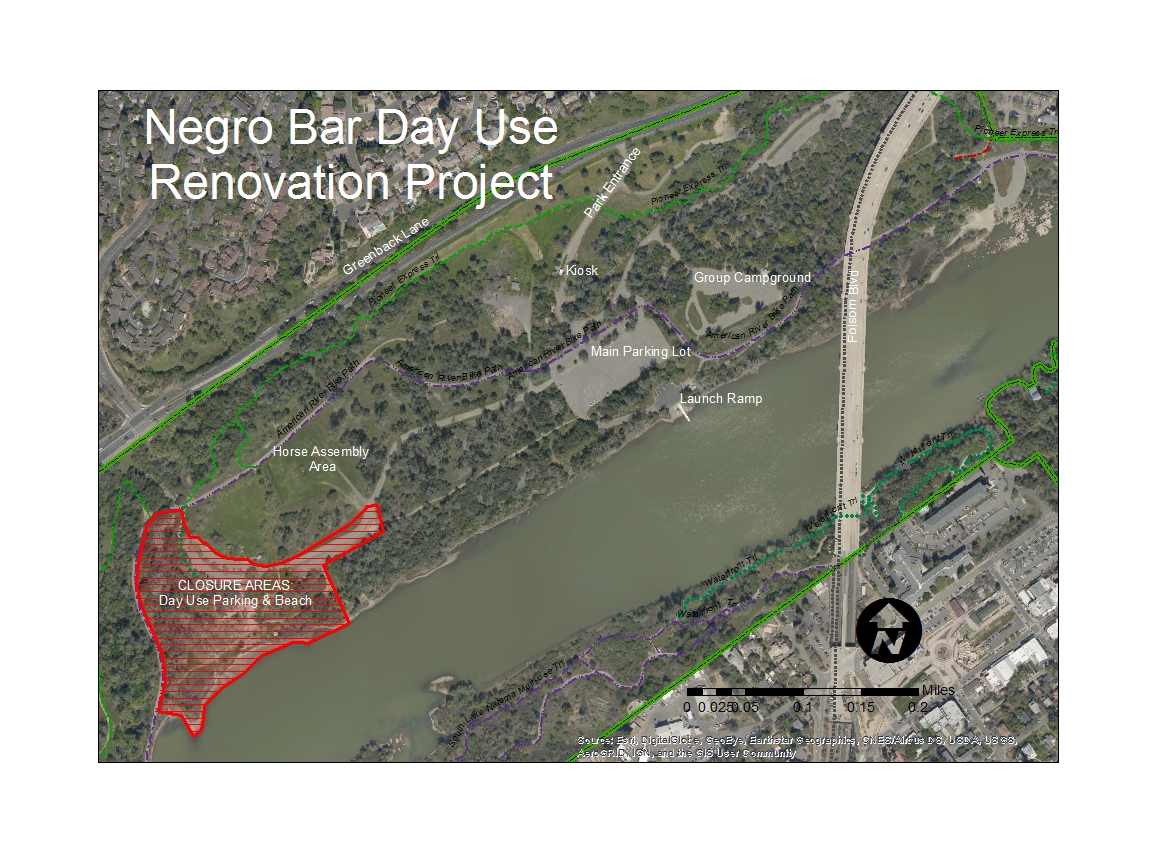 Major Renovation Project at Negro Bar – California State Parks announces the start of a major renovation project that will improve recreation facilities at the Negro Bar unit of the Folsom Lake State Recreation Area (SRA) beginning on Monday, Feb. 10, 2020.
