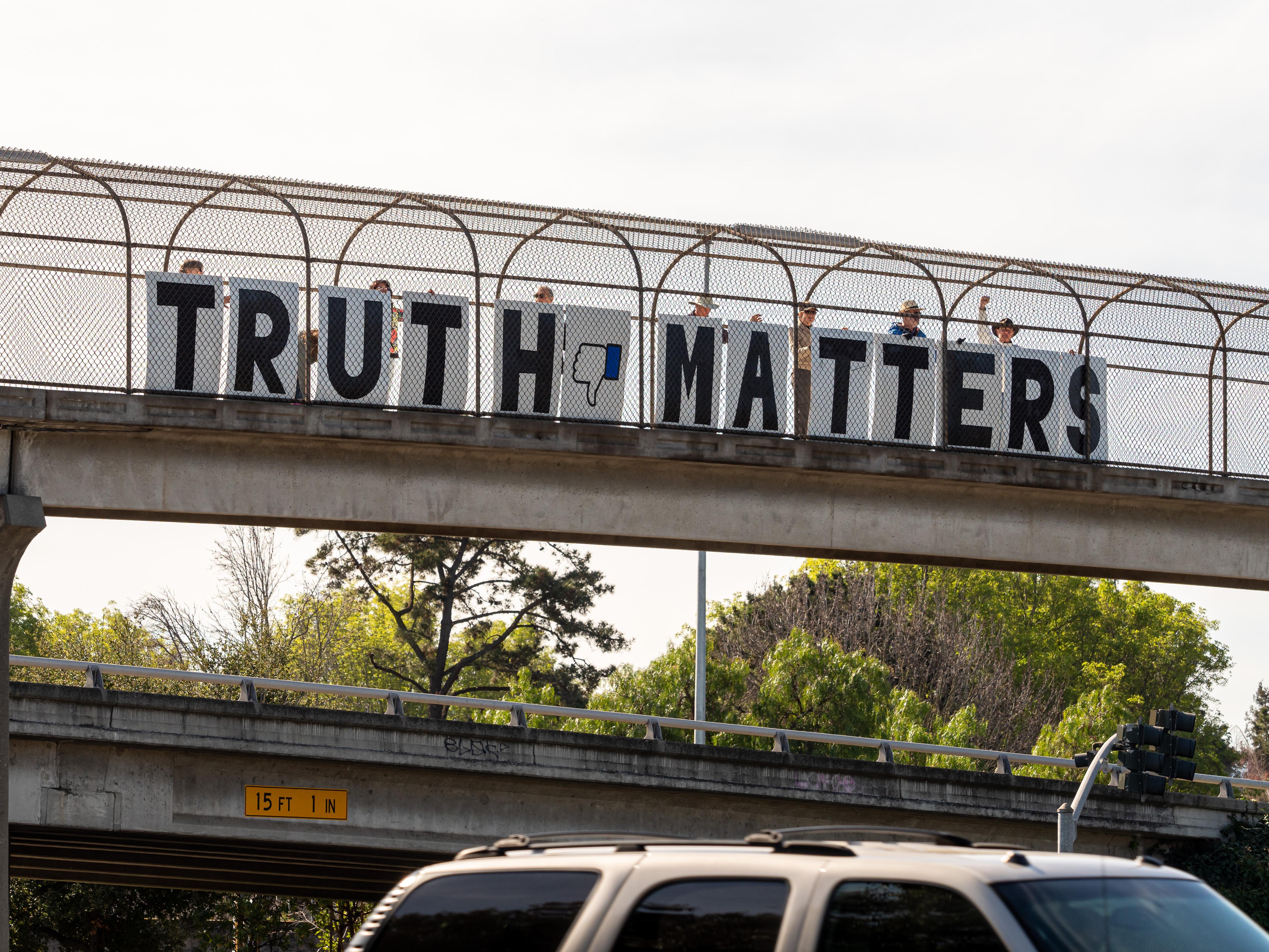 Message above Hwy 101 Tells Mark Zuckerberg and Facebook "Truth Matters"