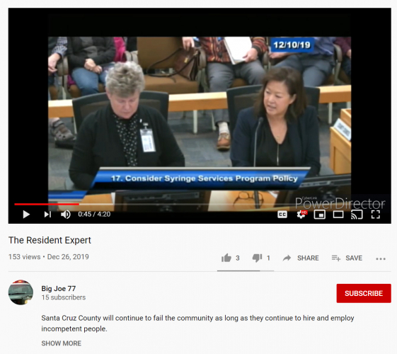 Damon Bruder, Santa Cruz County Supervisor Ryan Coonerty's appointee to the County's Syringe Services Program (SSP) Advisory Commission, has made harassing and bullying statements on social media directed at Rachel McCullough-Sanden, an Epidemiologist and HIV Surveillance Coordinator at the County Health Services Agency (HSA). On February 14, a disparaging screen capture of McCullough-Sanden taken from video of a Board of Supervisors meeting was posted to the Santa Cruz, CA: Keepin' It Real Facebook page. The photo was featured on the blog along with criticism of the County Health Department for being late in posting the monthly SSP report to the County's website. Commissioner Bruder commented on the photo, saying: "Maybe the daft woman in the photo was removed/demoted? ?♂️ A couple late reports would almost be an acceptable trade-off, if that were the case..." The February 14 comment wasn't the first time Damon Bruder has made bullying comments aimed at McCullough-Sanden on the blog; he and his domestic (and political) partner Paige Concannon made harassing comments about the County Health Officer in December as well.