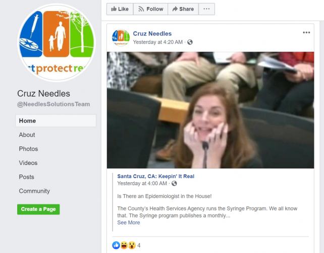 Take Back Santa Cruz (through their Cruz Needles social media account) shared the bullying post targeting Rachel McCullough-Sanden, and often shares other objectionable posts created by "Big Joe 77".